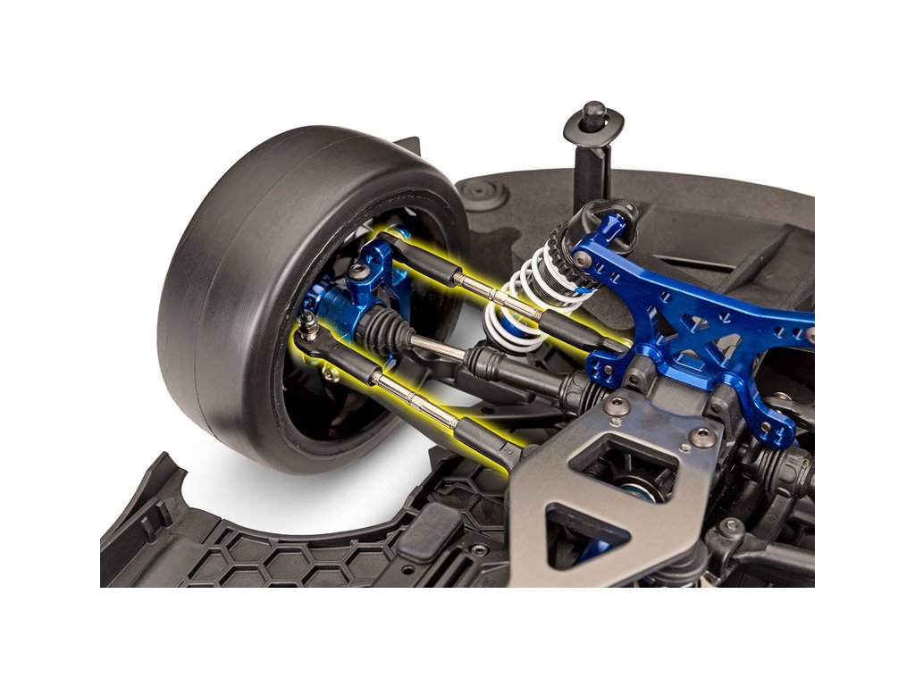 Olejové tlumiče s mohutnými pružinami absorbují nárazy a model má vlastnosti jako skutečné závodní auta. Tlumiče obsahují exkluzivní těsnící X-kroužky, které minimalizují prostup oleje kolem pístnice. Tlumiče jsou plně nastavitelné: předpětí pružin lze pohodlně změnit maticí na tlumiči, tuhost lze měnit změnou viskozity oleje.