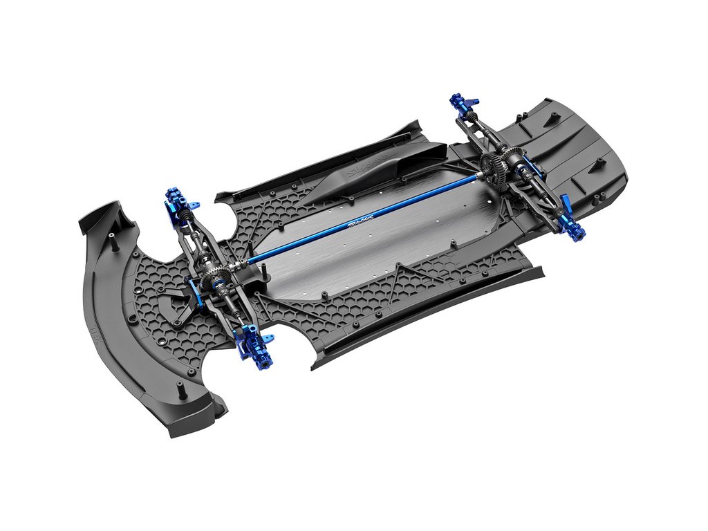 Šasi modelu tvoří extrémně pevná podvozková deska, vyrobená z hliníku 6061-T6 o tloušťce 3 mm. Podvozek je ze spodní strany naprosto rovný a jsou na něho přidělány plastové aerodynamické díly. Komponenty elektroniky a baterie jsou uloženy na podvozku uprostřed v ose modelu, čímž je zajištěno přesné vyvážení modelu a nízké těžiště. Díky tomu má RC model auta výborné jízdní vlastnosti.