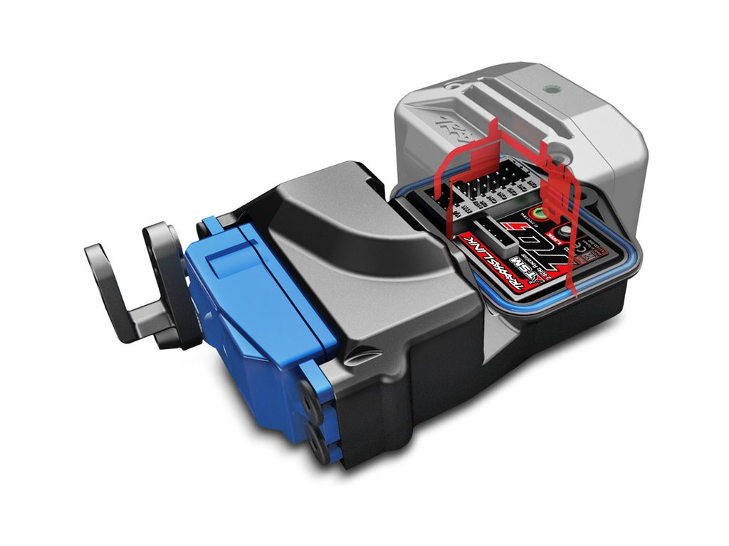 - RC souprava Traxxas TQi BlueTooth Ready s nainstalovaným Bluetooth modulem a pětikanálový přijímač se stabilizačním systémem Traxxas TSM