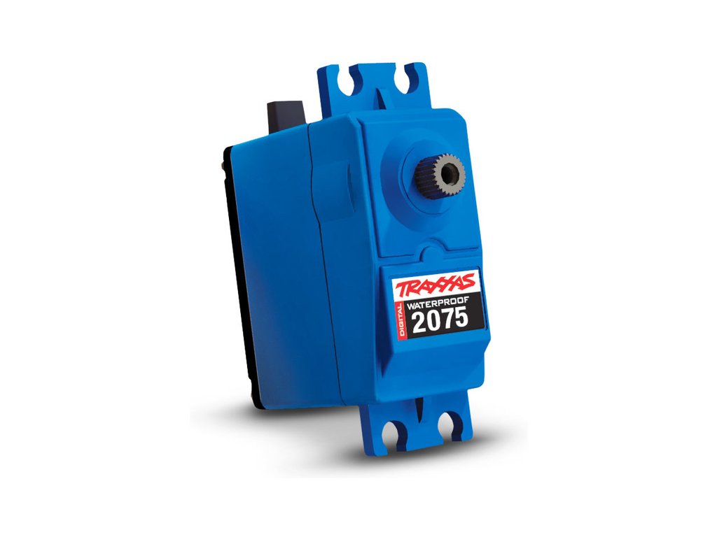 Digitální Traxxas servo 2075 high-torque voděodolné se stejnosměrným motorem a nylonovými převody má moment 9.0 kg.cm a rychlost 0.17 s/60°@ 6.0 V. Pro odolnost vůči vodě* je krabička serva a výstupní tisícihran osazen těsněním. Dvě kuličkové ložiska poskytují velmi hladký chod.