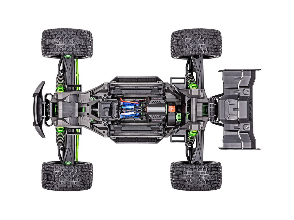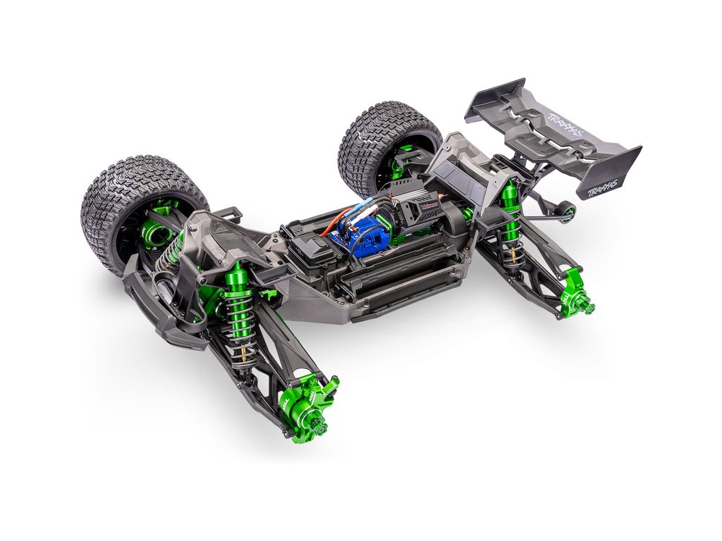 Pohon modelu zajišťuje speciálně upravený nový regulátor VXL-8S s ostřejší charakteristikou a výkonný střídavý motor Velineon 1200XL. Programovatelný vysílač Traxxas TQi je továrně vybaven Bluetooth modulem pro spojení modelu s mobilním telefonem a zobrazení telemetrických údajů, jako např. rychlost jízdy nebo otáčky motoru.
