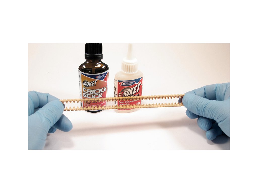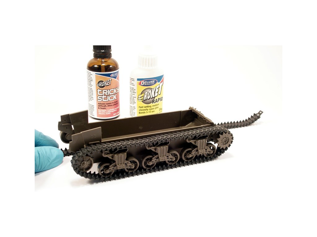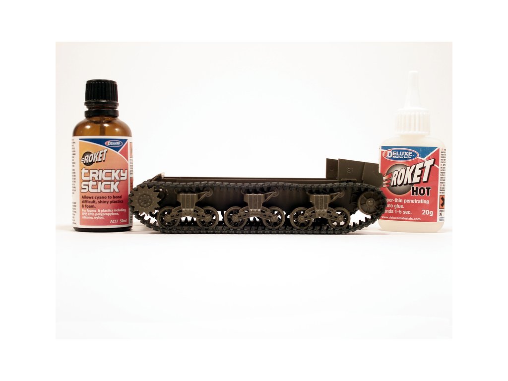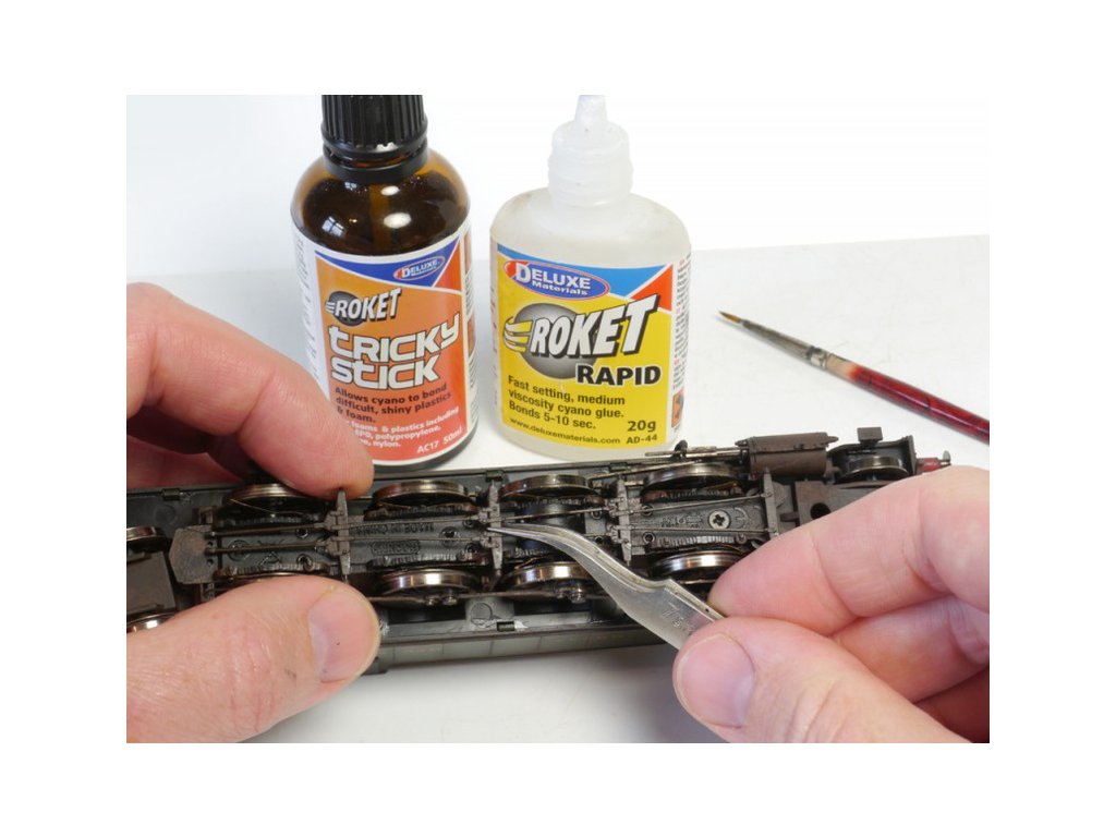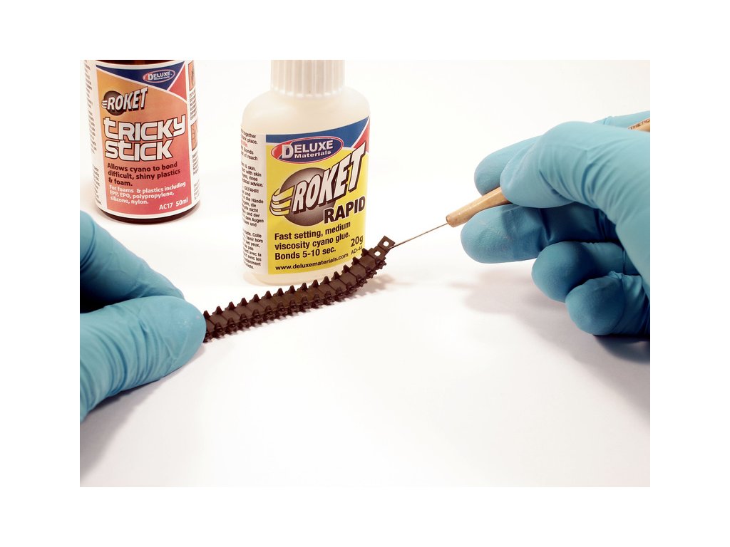 Tricky Stick je přípravek pro lepení těžko lepitelných plastů vteřinovými lepidly. Aktivuje povrch plastů pro lepší přilnutí lepidla. Nanáší se štětečkem na místa, která mají být lepeny.