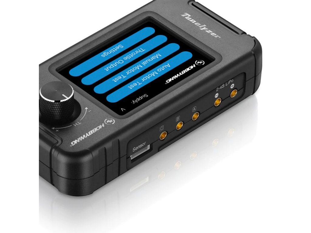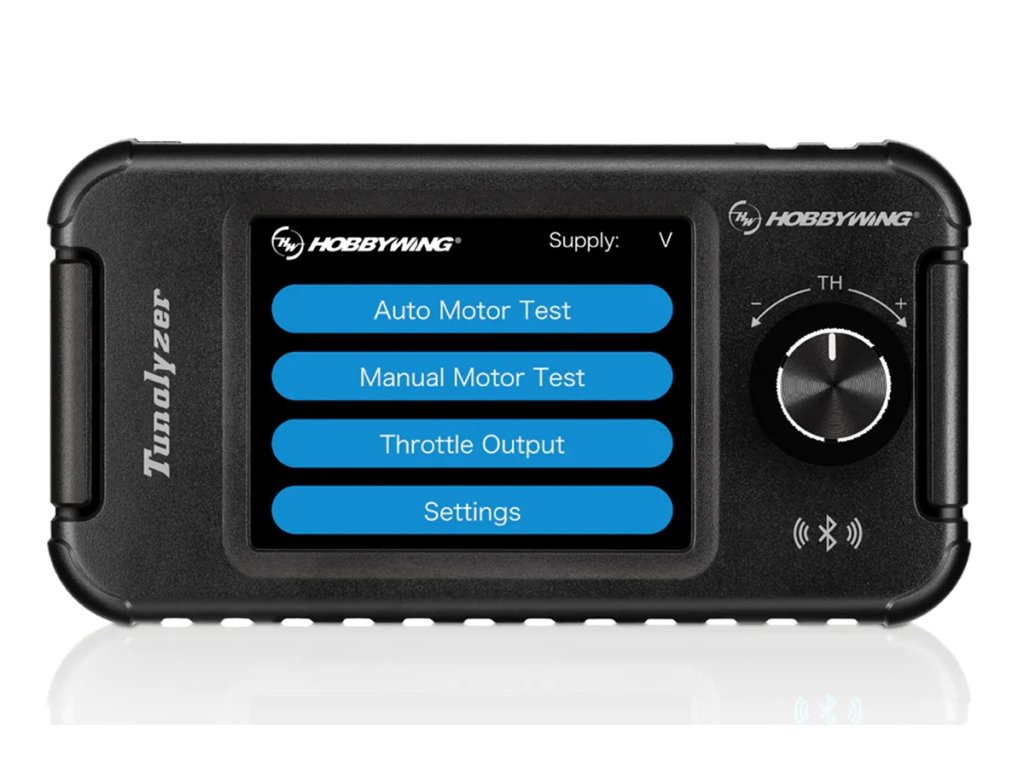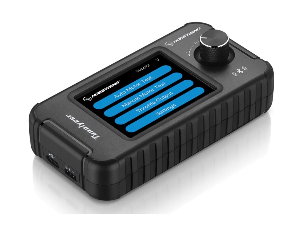 Tester střídavých elektromotorů Hobbywing Tunalyzer je elektronický přístroj speciálně zkonstruovaný pro měření parametrů, jako je počet otáček na volt („KV“), otáčky motoru, měření proudového odběru, měření časování (průměrné hodnoty i jednotlivých fází), kontrola funkcí Hallových senzorů střídavých motorů. Naměřené hodnoty pro střídavé motory se snímači i bez snímačů jsou zobrazovány na dotykovém LCD displeji. Tunalyzer také pracuje jako servotester a díky vestavěnému Bluetooth umožňuje nastavování regulátorů otáček Hobbywing a aktualizaci jejich firmwaru s pomocí mobilní aplikace HW Link.