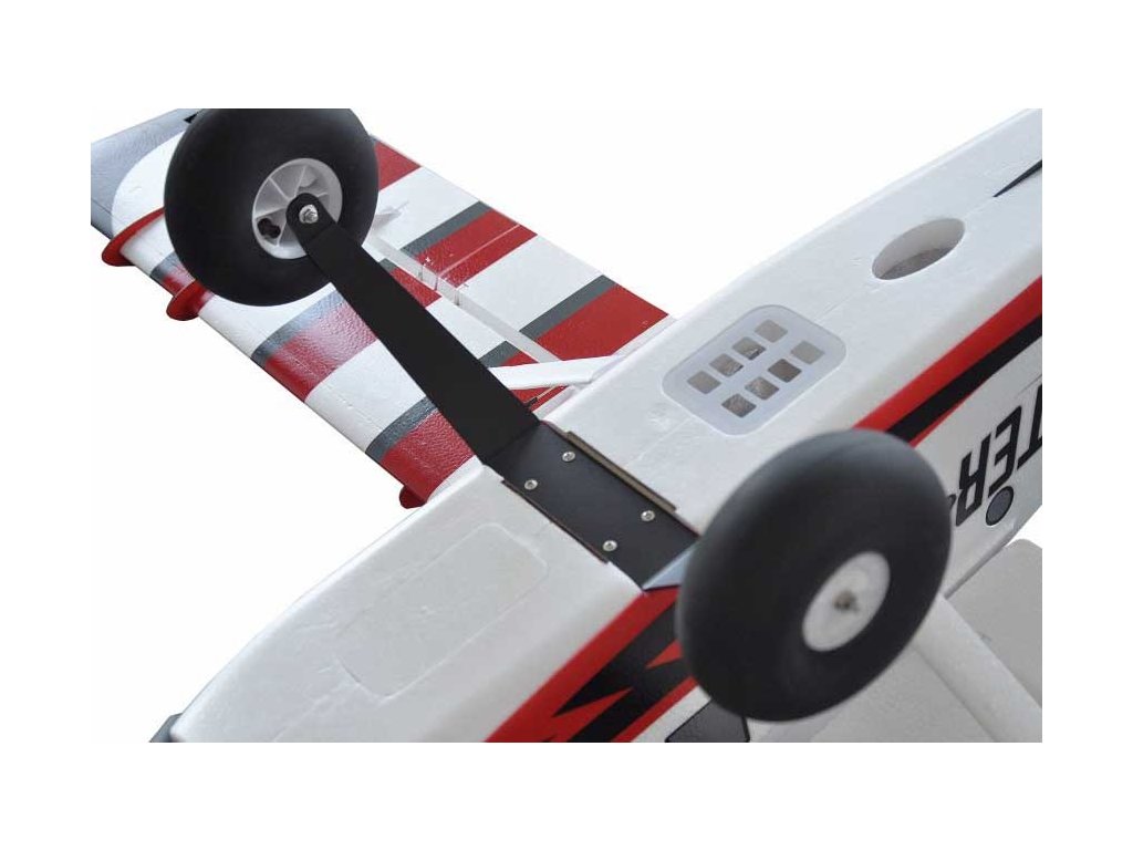 Podvozek je dvoukolý s vysokoprofilovými pneumatiky které poskytuji velmi dobré odpružení při přistáních a startech na hrbolatém terénu. Ostruhové kolo je řízené servem směrovky.