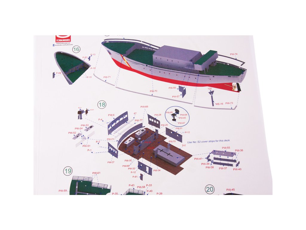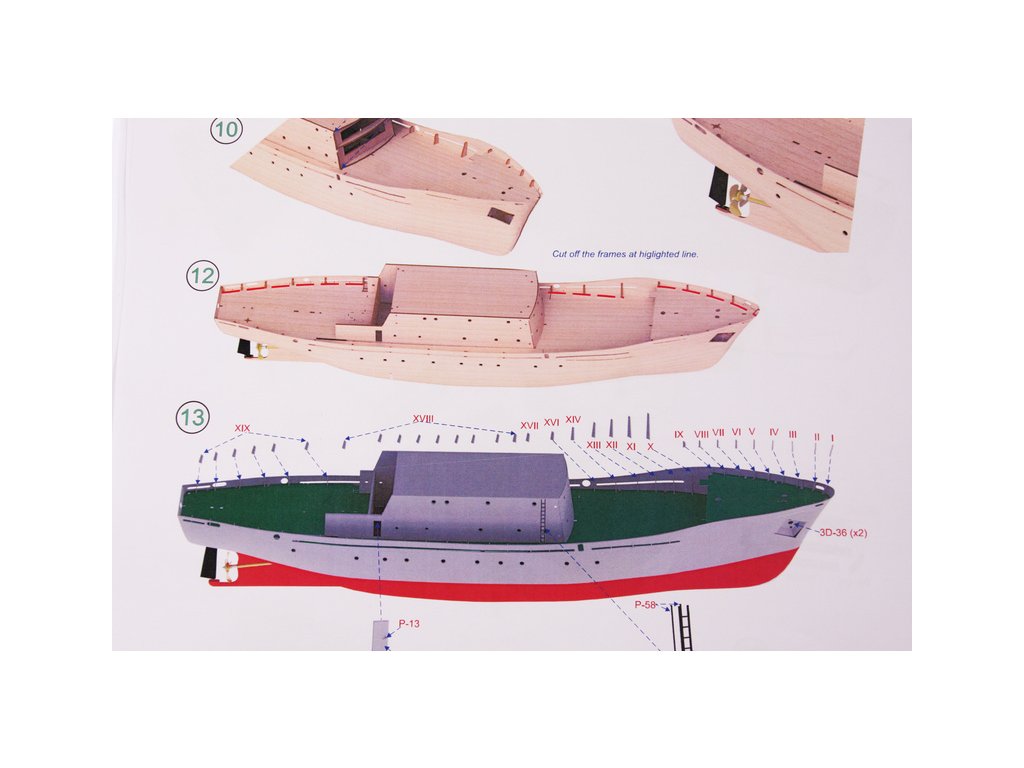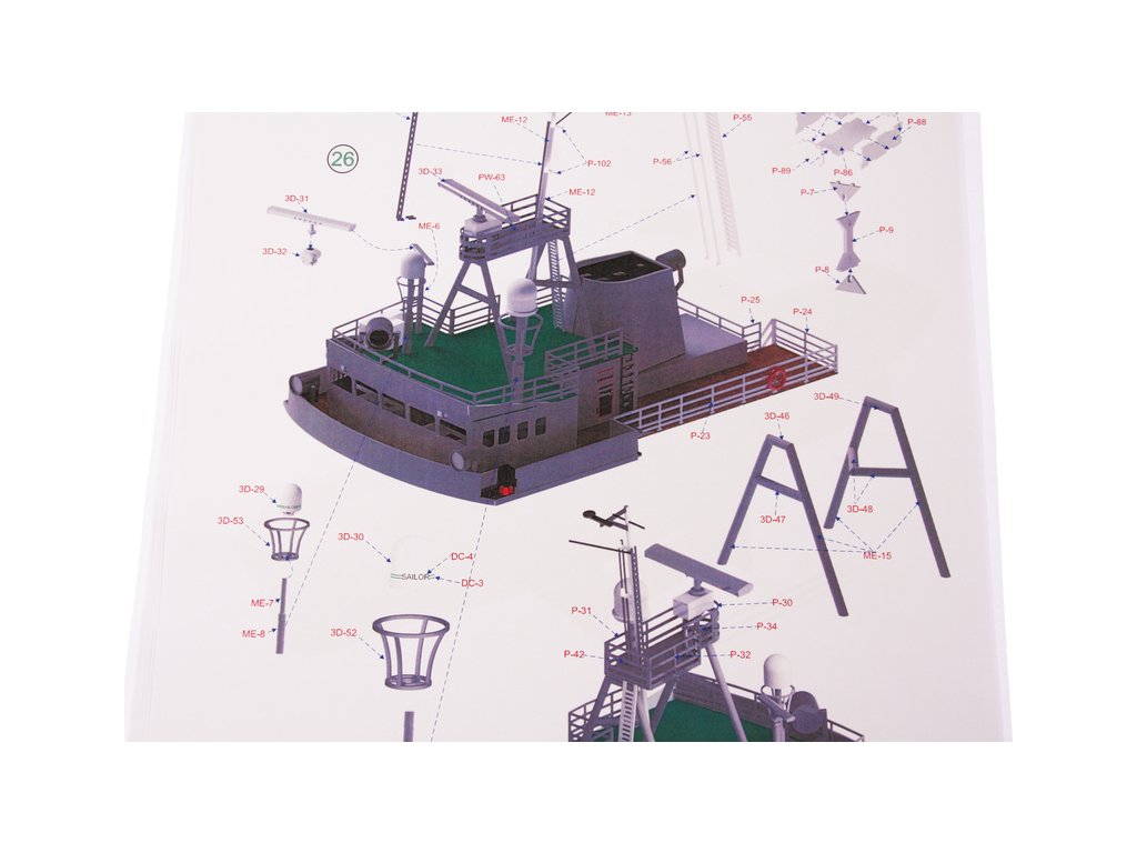 Set obsahuje kompletní sadu výkresové dokumentace, která obsahuje postup stavby trupu, nástaveb a vybavení, včetně zástavby pohonu a elektroniky. Na výkresech jsou nakresleny montážní sestavy, jejich kompletace a to včetně maketových detailů.