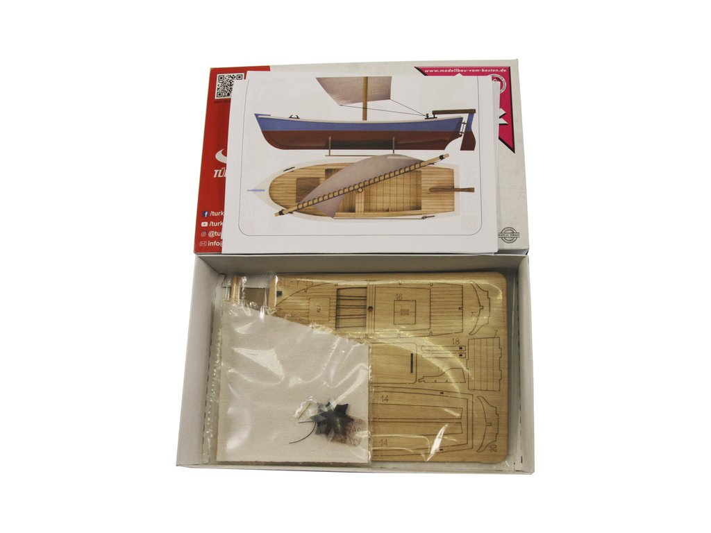 Stavebnice modelu lodi Türkmodel rybářský plachetní člun v měřítku 1:35. Délka modelu lodi je 167mm, stavba převážně ze dřeva, 3D tištěné detailní resinové doplňky, součástí je i stavební plán. Obrazový manuál krok za krokem.