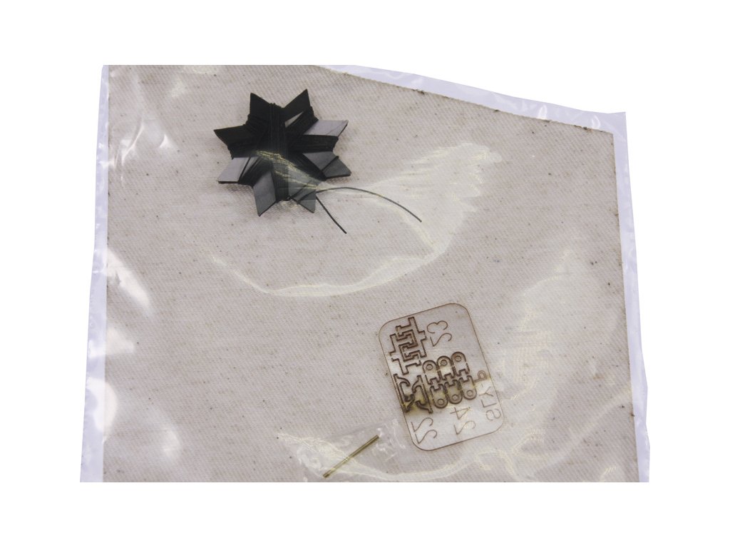 Balení Türkmodel plachetnice 1:35 kit obsahuje sady překližkových laserem vyřezaných dílů, sáčky s drobnými díly, sadu výkresů a vícejazyčný manuál.