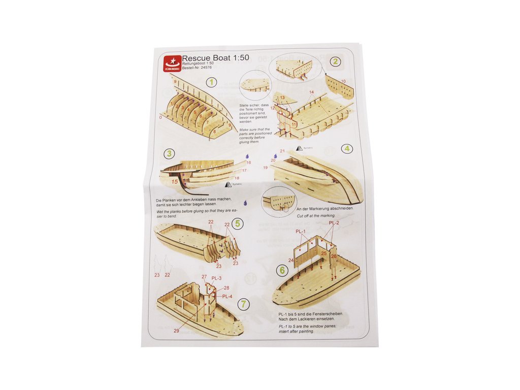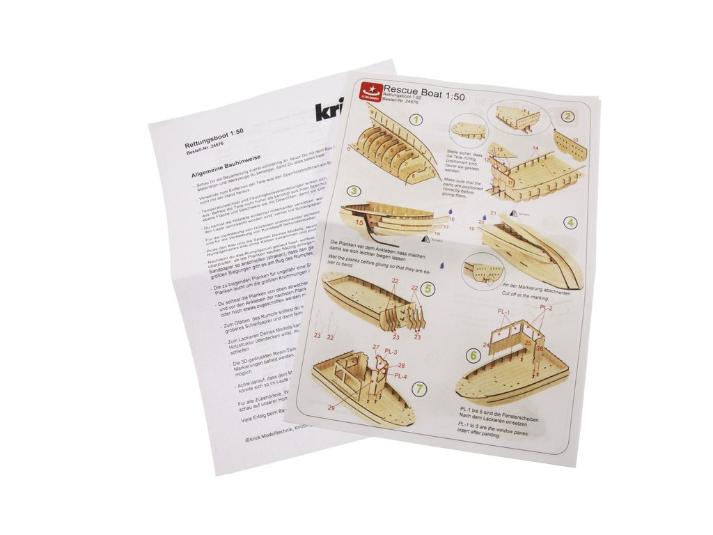 Stavebnice modelu lodi Türkmodel záchranný člun v měřítku 1:50. Stavba převážně ze dřeva, 3D plastové doplňky, součástí je i stavební plán. Obrazový manuál krok za krokem.
