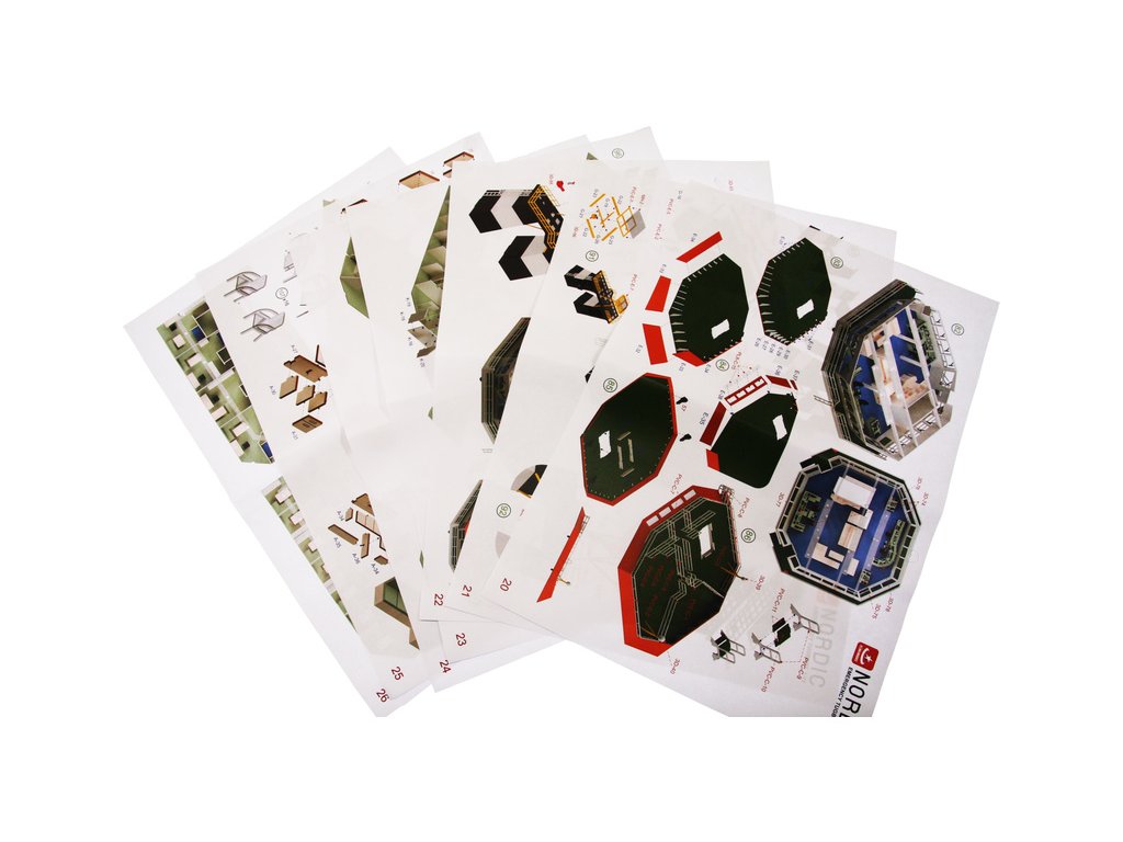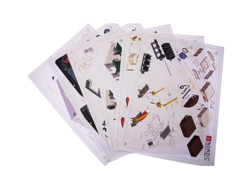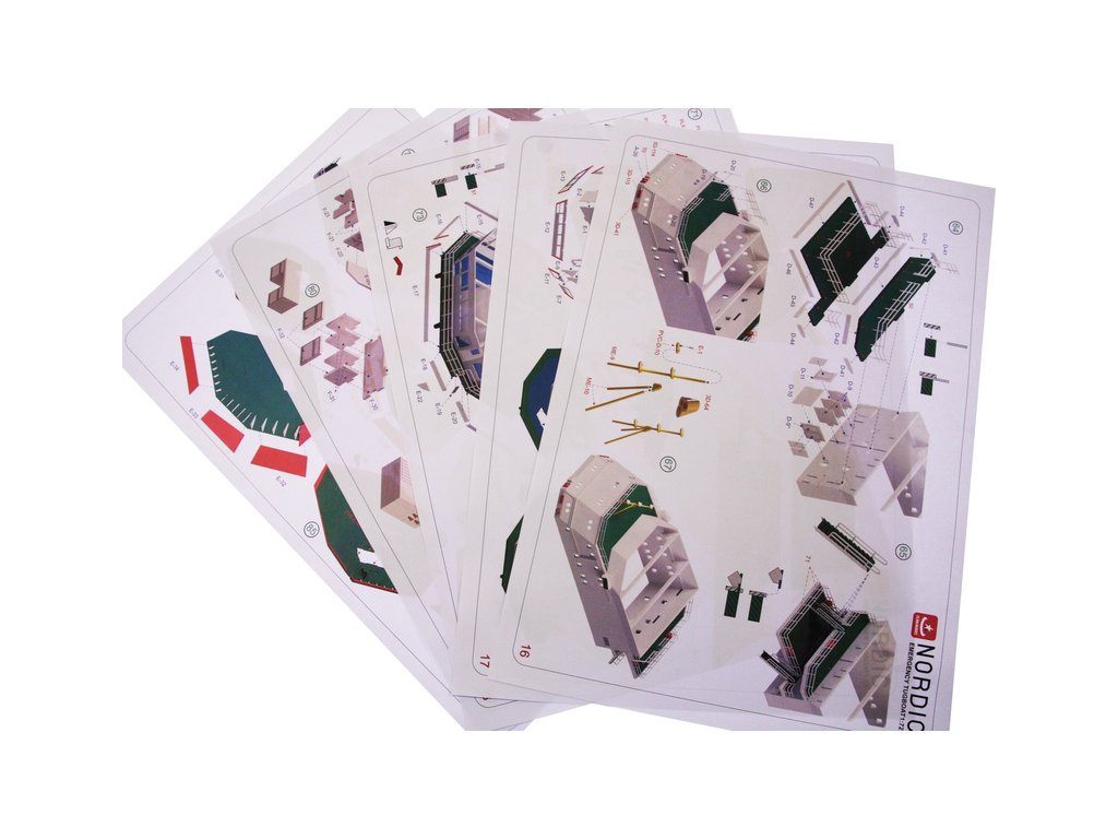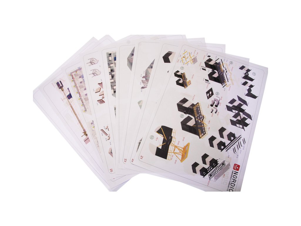 Set obsahuje kompletní sadu výkresové dokumentace modelu s obrázky jednotlivých detailů. Na výkrese jsou nakresleny montážní sestavy, jejich kompletace a to včetně drobných maketových detailů. Vícejazyčný postup stavby rámcově upravuje logické sestavení jednotlivých komponentů.