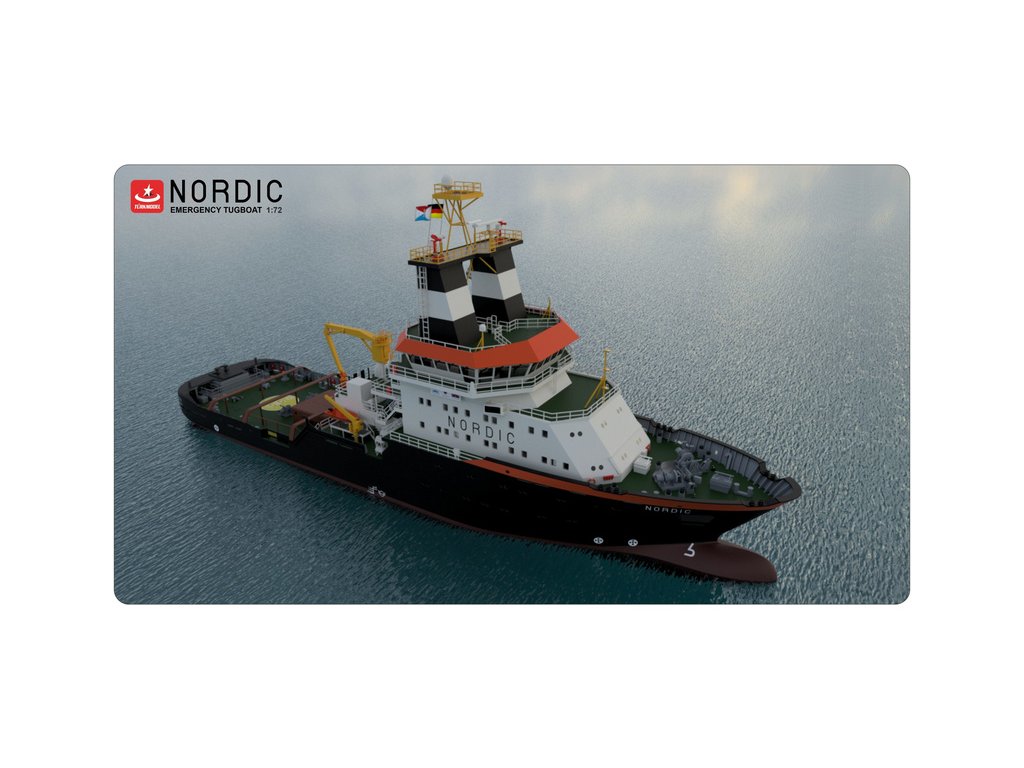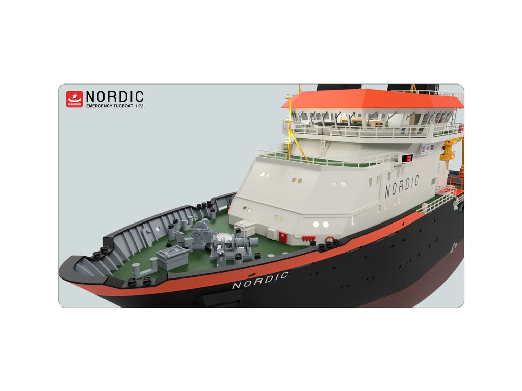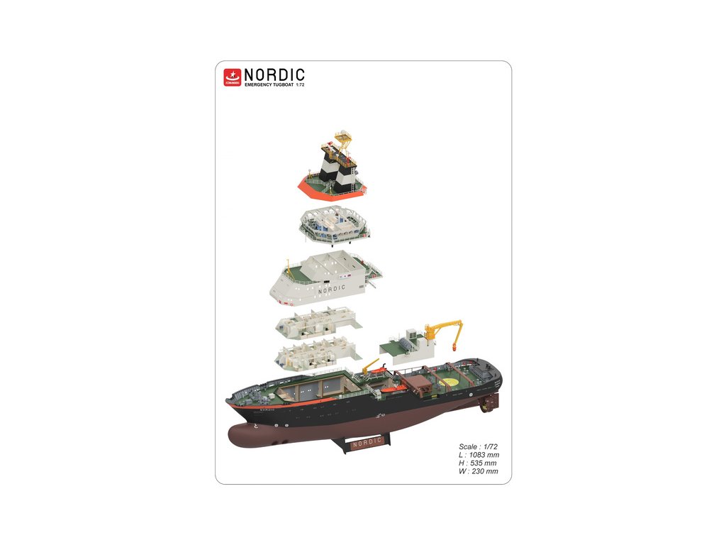 Stavebnice modelu lodi záchranného remorkéru Nordic v měřítku 1:72 s délkou 108 cm. Stavba lodi vhodná pro zkušené modeláře. Maketa byla navržena podle originálních výkresů, včetně detailních prvků. Model obsahuje dřevěný překližkový trup doplněný o lišty z Abachi. Dřevěné díly jsou přesně a čistě laserem řezané. Dále model obsahuje kvalitní resinované 3D díly. Hlavní můstek a obytné kajuty májí kompletně vybavený interiér. Stavebnice je navržena jako statický model, lze jej však sestavit jako plovoucí model a doplnit o pohonnou sadu a elektroniku s RC soupravou. (Není obsahem balení).