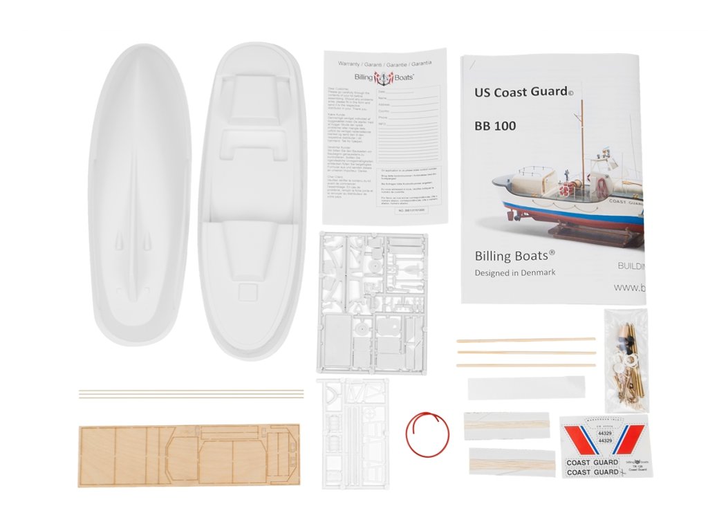 U.S. Coast Guard 44‘ má trup tvořený plastovým výliskem, plastovou palubu a dřevěnou nástavbu. Stavebnice obsahuje všechny plastové a dřevěné díly potřebné pro dokončení modelu, maketové příslušenství (např. poziční světla, kotvu, záchranné kruhy, lodní šroub atd.).