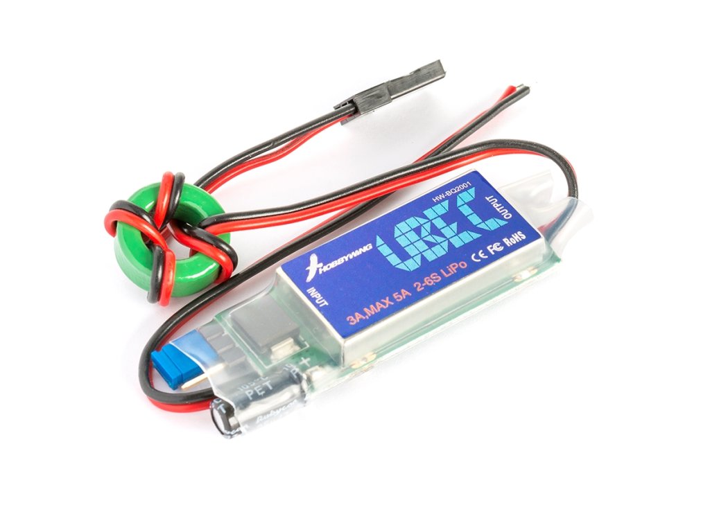 UBEC 3 A je spínaný stejnosměrný stabilizátor napájení; napájí se z 2-6S LiPo akumulátoru, vstupní napětí sníží na úroveň vhodnou pro napájení přijímačů a palubní elektroniky RC modelů a výstupní napětí stabilizuje na nastavené hodnotě (5,0 nebo 6,0 V). Zatížitelnost UBEC je 3 A trvale, 5 A špičkově. Díky tomu je vhodný pro menší RC vrtulníky, multikoptéry, auta, lodě nebo modely letadel.