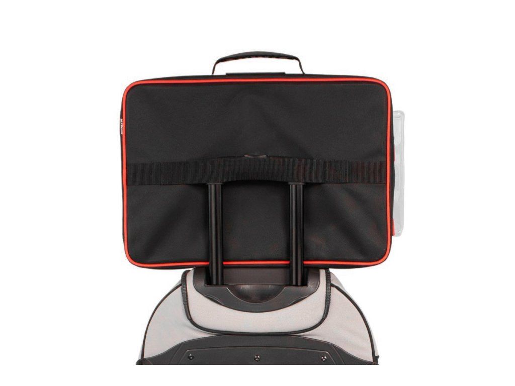 Hlavní rukojeť je umístěna nahoře pro horizontální přenášení. Tím je zajištěno, že váha vozu nevyvíjí tlak na zip, což zabraňuje náhodnému otevření tašky.