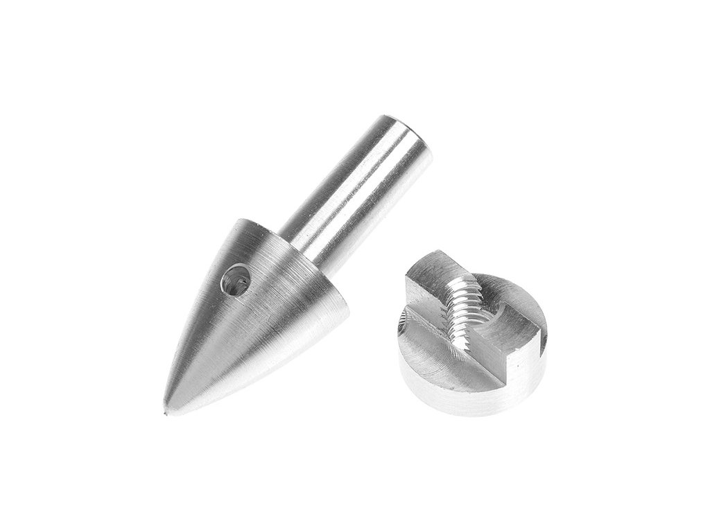 Unášeč lodního šroubu se skládá ze dvou částí, samotný unášeč se závitem M4 má průměr 10mm, výšku 6,5mm a plošku 3mm. Kužel o délce 25mm má průměr 9,8mm, válcovou část o průměru 4,9mm a délce 12,3mm s vnitřním závitem M4.