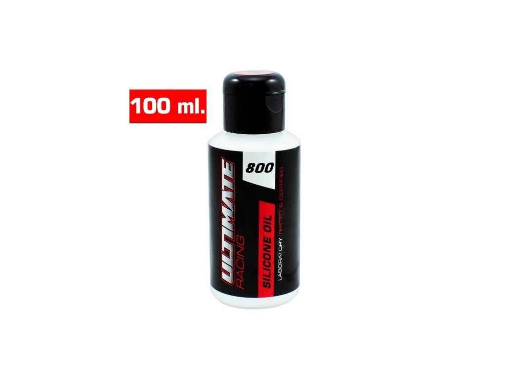 Jedná se o 100 ml lahvičku silikonového oleje Ultimate Racing 800 cSt, který se používá do olejových tlumičů. Tlumičový olej Ultimate Racing je vyroben ze 100% čistého silikonového oleje a v horkém počasí nezřídne a v chladném počasí nezhoustne. Čím vyšší je viskozitní číslo oleje, tím je olej hustší. Silikonový olej Ultimate Racing obsahuje aditiva proti tření, která zajišťuje životnost tlumičů a minimalizují změny viskozity.