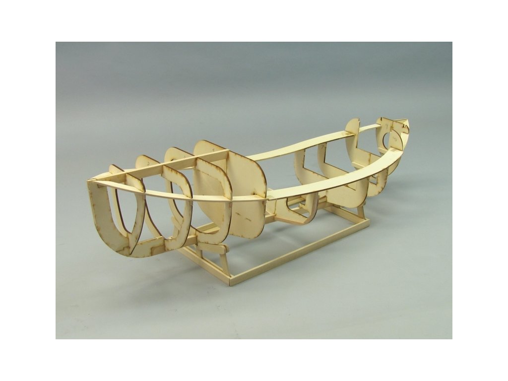 Trup je tvořen (stejně jako u skutečné lodi) kostrou, jejíž páteř tvoří kýl s nalepenými žebry - všechny díly jsou laserem vyřezávané, stejně jako stavebí přípravky zaručující správné sestavení kostry. Obšívka trupu je tvořena balsovými lištami - použití měkkého dřeva usnadňuje ohýbání a tvarování planěk (bez nutnosti namáčení) i jejich následné broušení. Pro dosažení složitějších tvarů ale samozřejmě budete muset sáhnout po namáčení (ve zředěné čpavkové vodě 1:1 za studena nebo v horké vodě s přídavkem tekutého avivážního prostředku) - ale díky promyšlené konstrukci lodi jen vyjímečně. Paluba a nástavba jsou z laserem vyřezávaných překližkových dílů a balsových planěk.