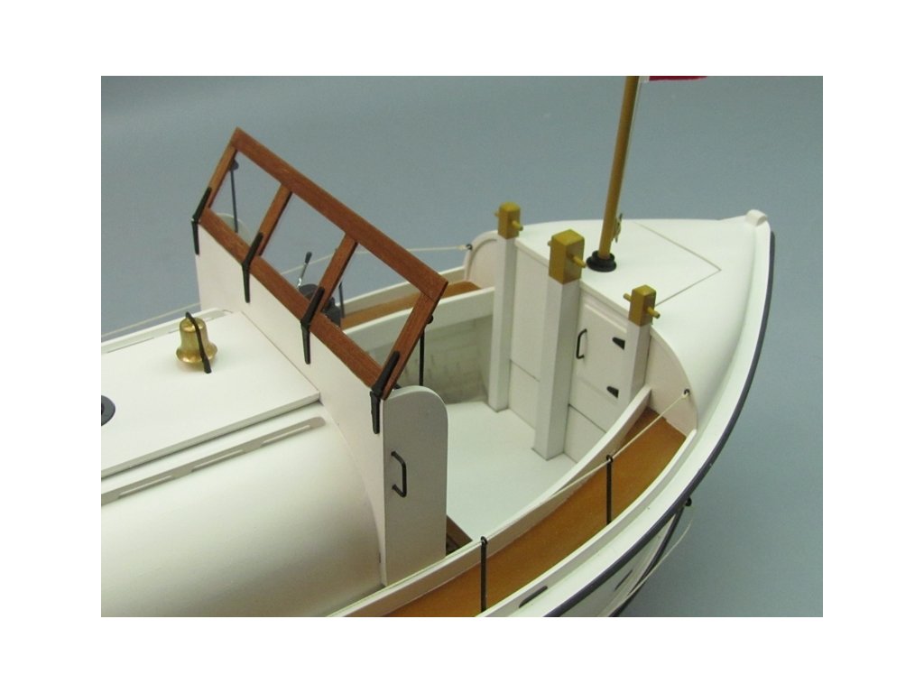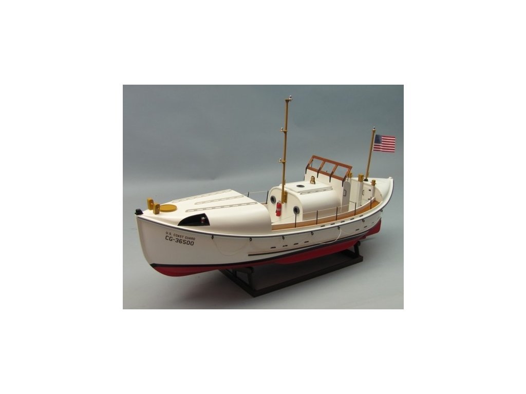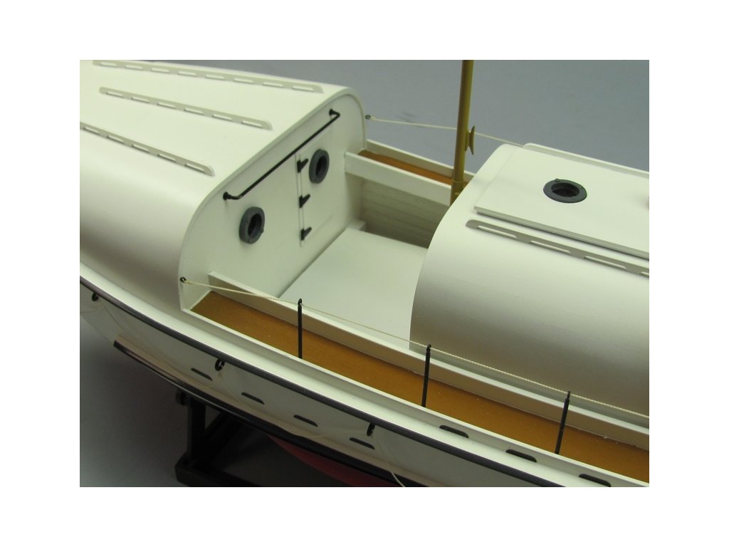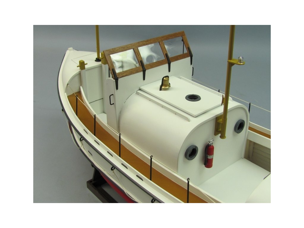 Stavebnice záchranné člunu v rozsypu v měřítku 1: 16 pro pohon elektromotorem řady 500-600 pro pokročilejší stavitele. Díky vysokému předpracování většiny dílů není stavba nijak zvlášť náročná na zručnost a dílenské vybavení - ale samozřejmě pečlivá a trpělivá práce je v lodním stavitelství nezbytná pro dosažení dobrého výsledku. Pro lepení budete potřebovat střední a husté vteřinové lepidlo, "acetonové" modelářské lepidlo a epoxid. Vlastní stavba probíhá dle výkresu ve skutečné velikosti, dle perspektivních výkresů zobrazujících detailně konstrukci dané části lodi, pro vybrané klíčové kroky (jako je stavba kostry trupu) slouží stavební přípravky z překližkových dílů. Zhotovování doplňků jako jsou třeba zábradlí usnadňují předtištěné šablony v měřítku 1:1.