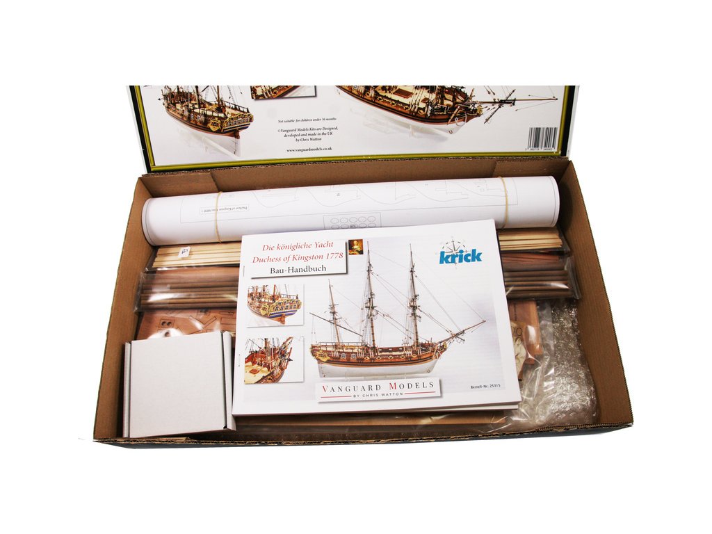 Stavebnice modelu lodi Vanguard Models Duchess of Kingston 1778 v měřítku 1:64. Loď s množství detailů a klasických prvků. Stavba převážně ze dřeva, laserem řezané díly, mosazné kování. Výhodou stavebnice je detailní obrázkový manuál krok po kroku.
