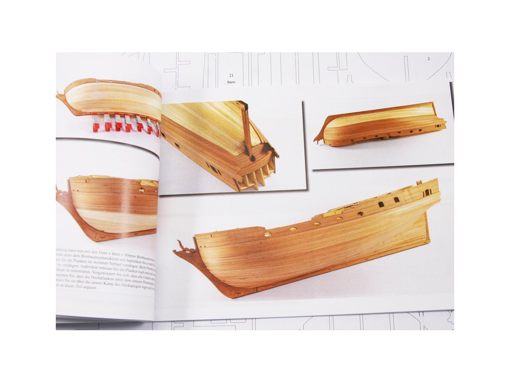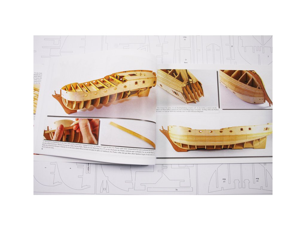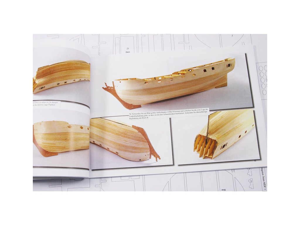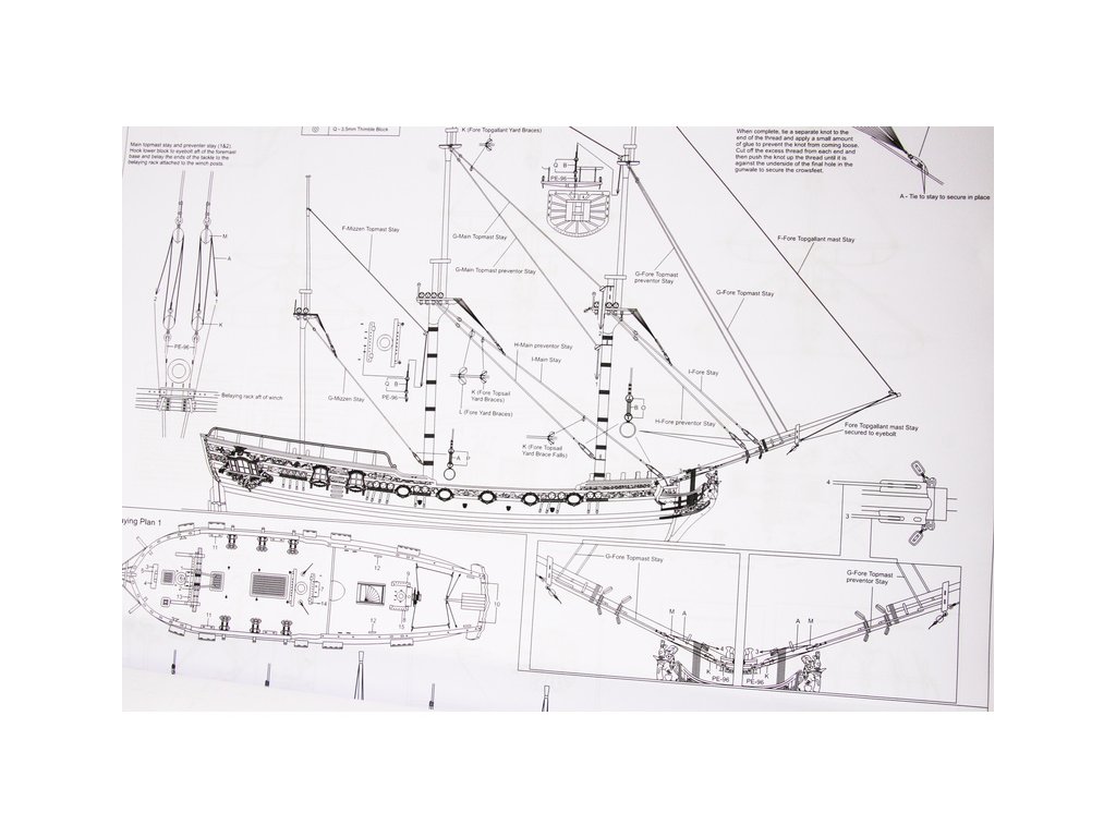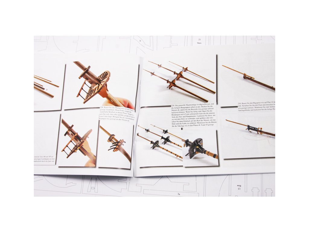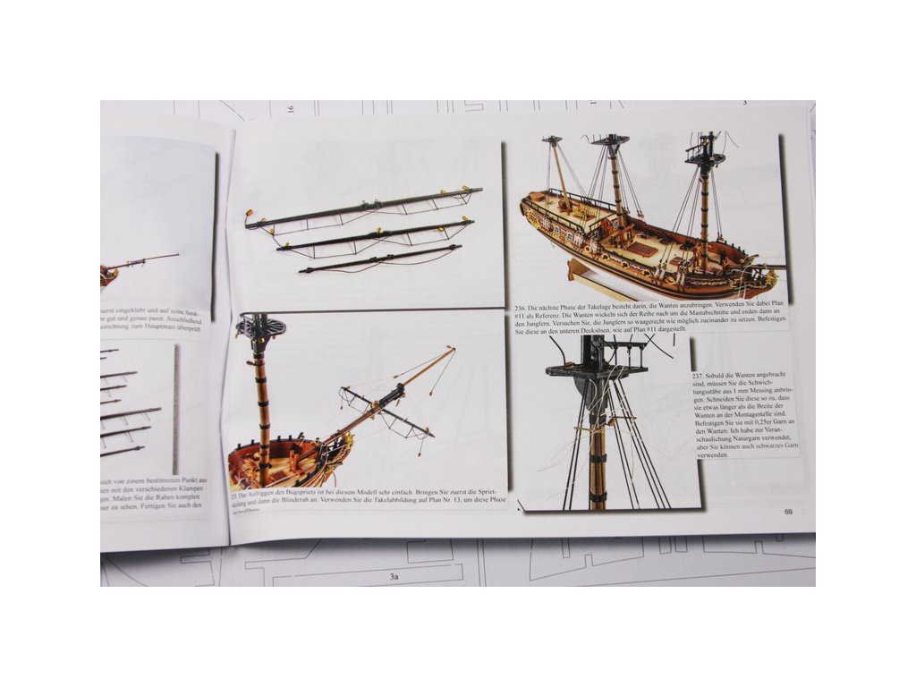 Set obsahuje kompletní sadu výkresové dokumentace modelu v měřítku 1:1 s obrázky jednotlivých detailů. Na výkrese jsou v měřítku nakresleny montážní sestavy, jejich kompletace a to včetně stěžňů a ráhen a způsob vázání lanoví. Vícejazyčný postup stavby rámcově upravuje logické sestavení jednotlivých komponentů.