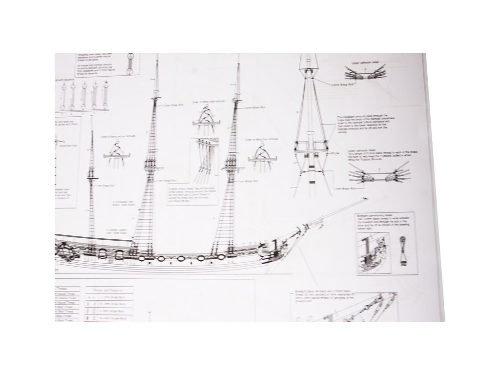 - Velmi obsáhlý a podrobný obrázkový návod, spolu s 13 plány v plné velikosti, které zahrnují všechny výkresy stožárů a lanoví