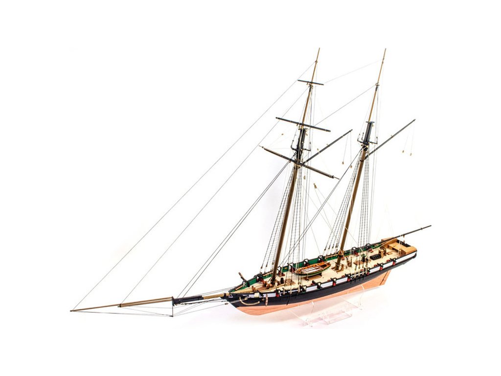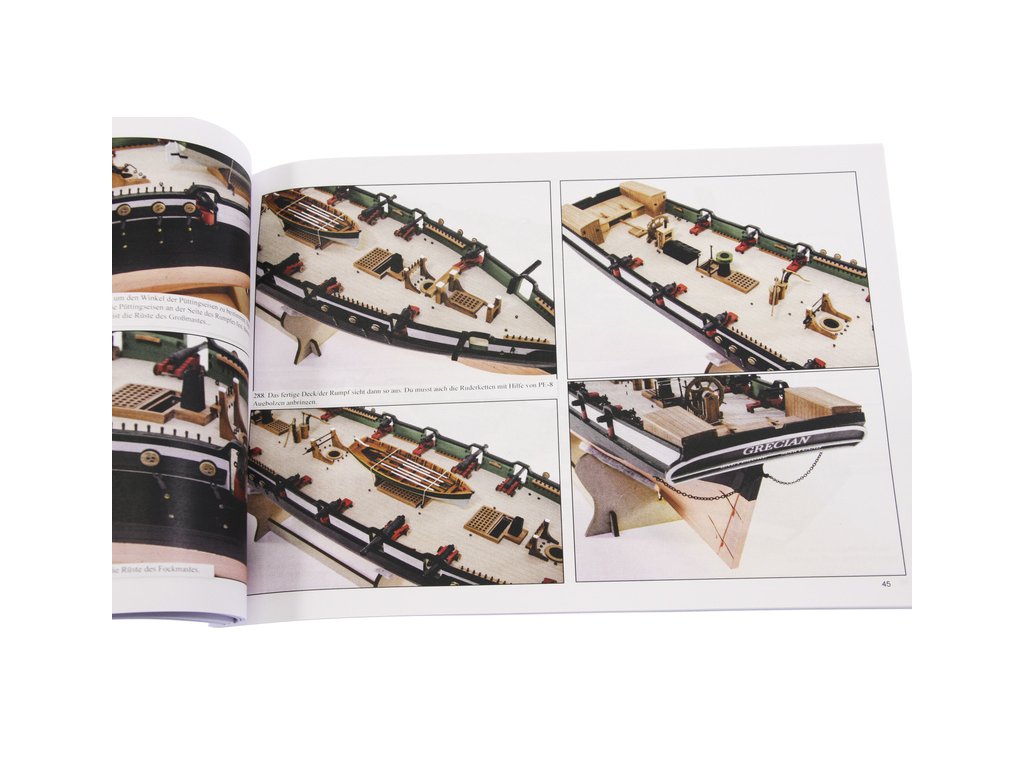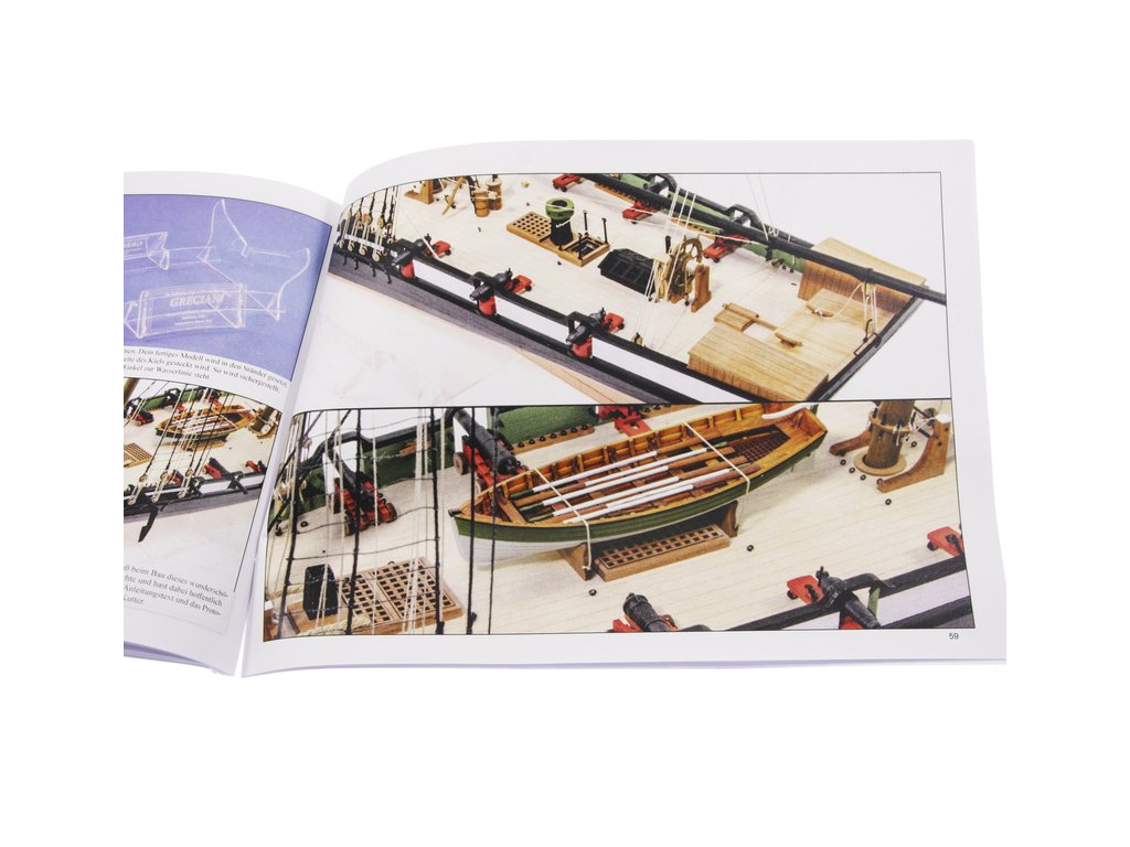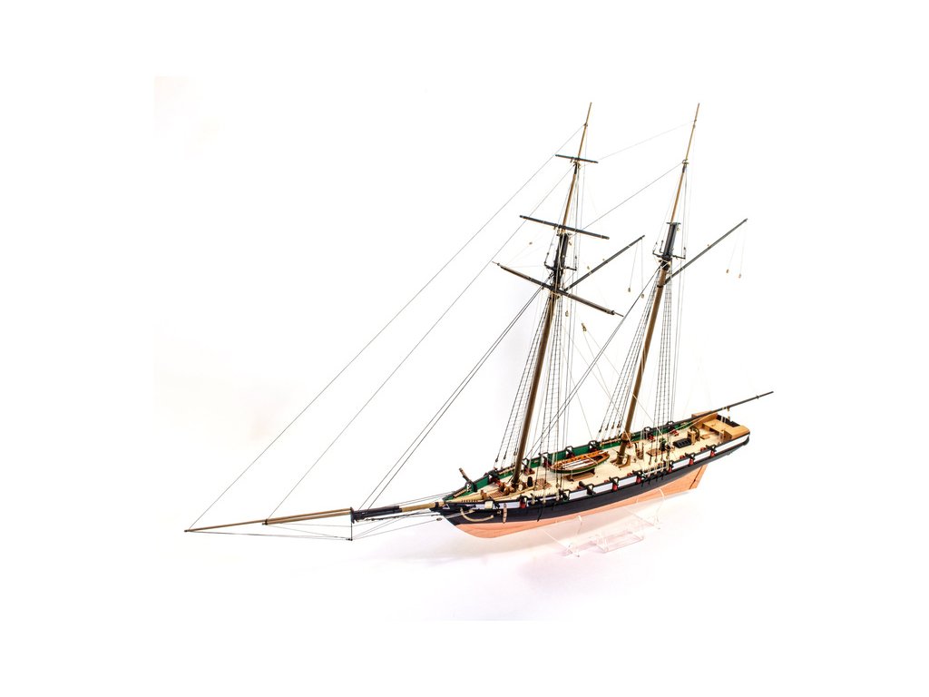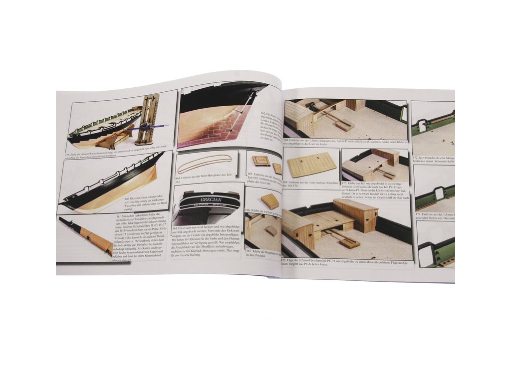 Stavebnice neplovoucího modelu lodi amerického škuneru Grecian z roku 1813 v měřítku 1:64. Pro zkušené modeláře. Dřevěný trup z laserem vyřezaných dílů, součástí je stavební plán, autentické detaily. Komplexní, barevný návod k použití spolu s 11 plány.