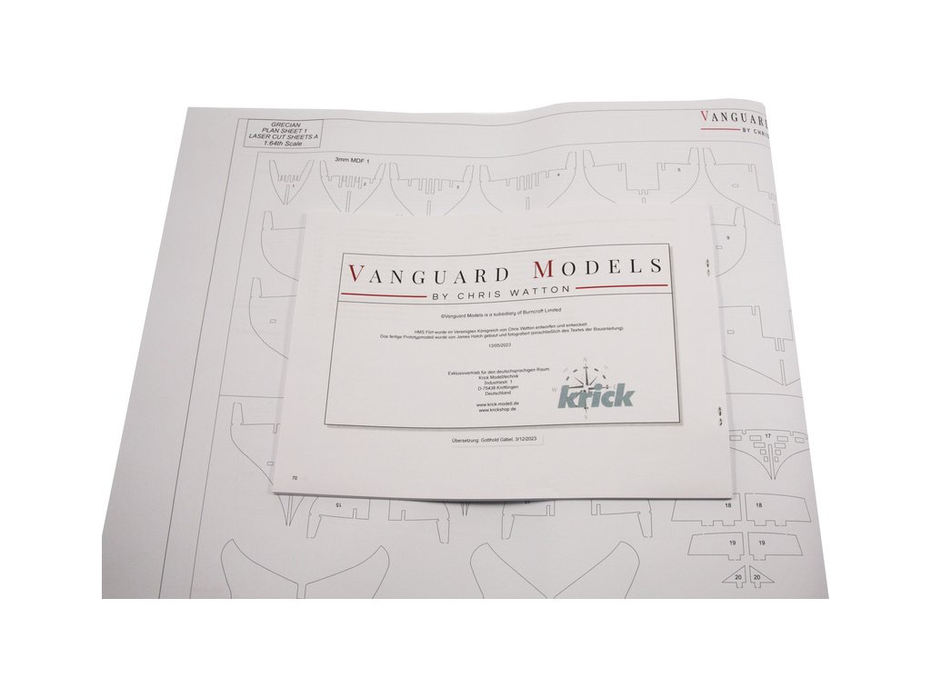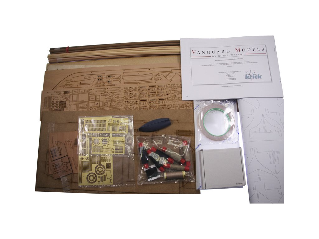 Společnost Vanguard Models založil známý konstruktér lodních modelů Chris Watton, který se u Amati zasloužil o poslední konstrukce modelů lodí, zejména v sérii Victory Models. Nyní, jako samostatný výrobce důsledně realizuje svou ambici o co nejlepší věrnost originálu a nejvyšší kvalitu materiálu. Nekompromisně zavedl zejména výrobu dílů z ušlechtilého dřeva s laserovým gravírováním a je pro něj také důležité vyrobit dokonalé konstrukční návody se stovkami barevných fotografií tak, aby modely byly potěšením ze stavby i pro nezkušené modeláře. Vysoká kvalita materiálu a promyšlená konstrukce rozhodně to stojí za to.