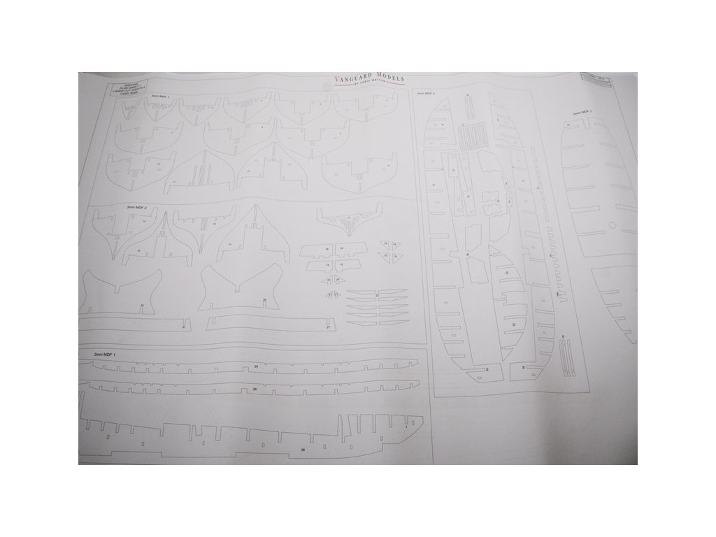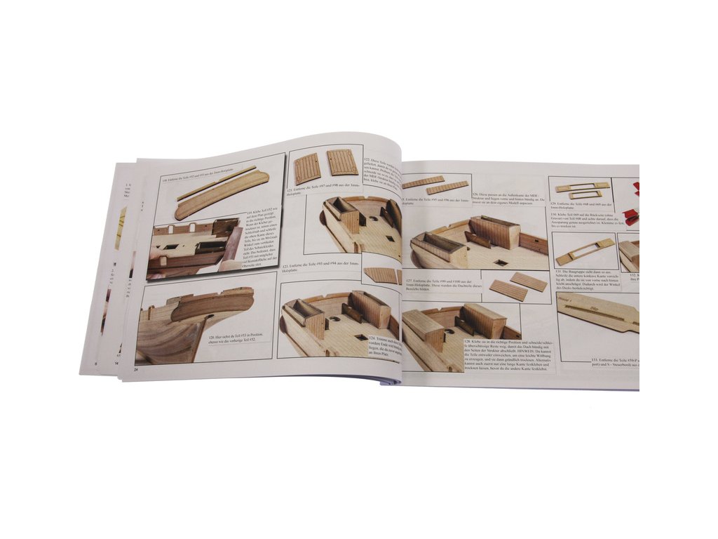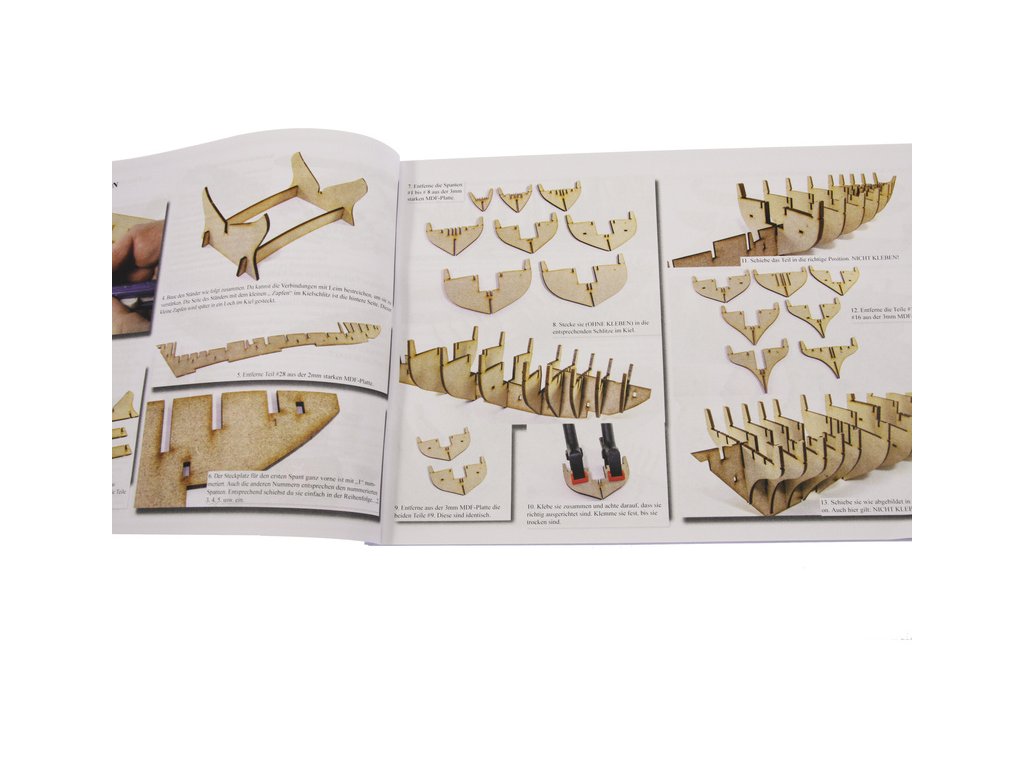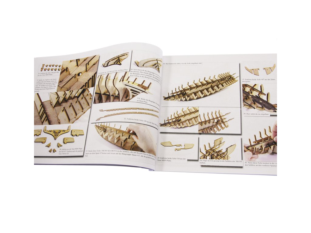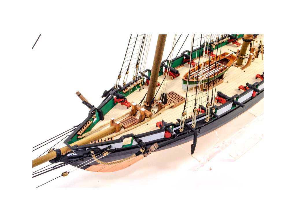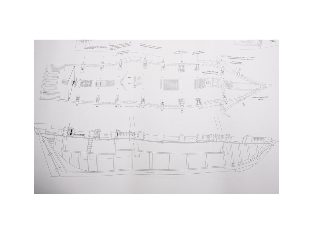 Balení obsahuje laserem řezané a gravírované díly vyrobené z MDF a hruškového dřeva, laserem gravírovaná a řezaná deska z lipového dřeva s detaily, 3 destičky vyrobené z fotoleptaných mosazných dílů, 3D tištěné díly s vysokým rozlišením, dvouplaňkový trup je z lipového dřeva pro první a hruškového dřeva pro druhé prkna obšívky, kulaté lišty z ořechového dřeva pro stěženě, ráhna a výložník. Několik velikostí černě a přírodně zbarvené nitě pro lanoví, stejně jako všechny potřebné součásti. Komplexní, barevný návod k použití spolu s 11 plánky obsahujícími všechny výkresy stěžně a lanoví - manuál EN