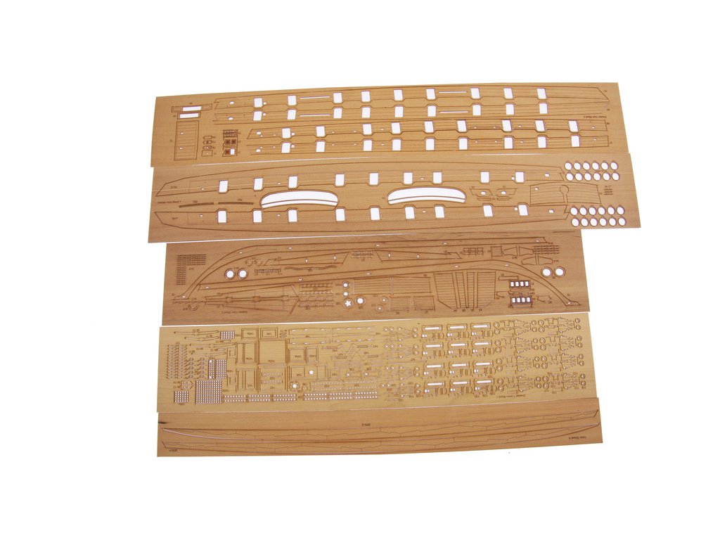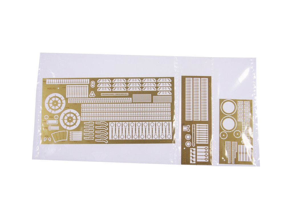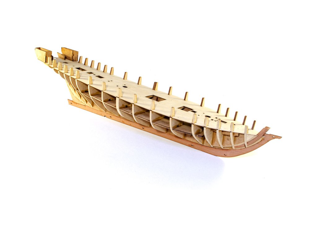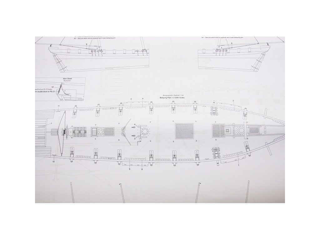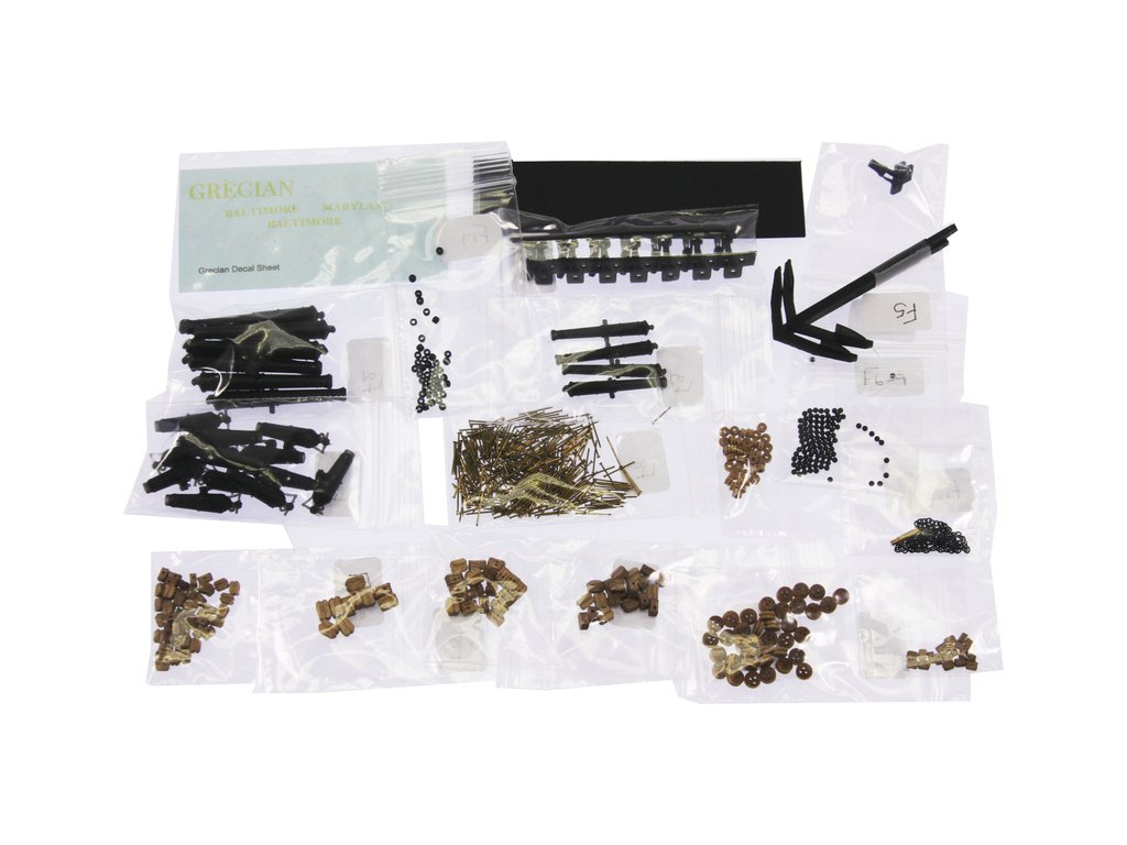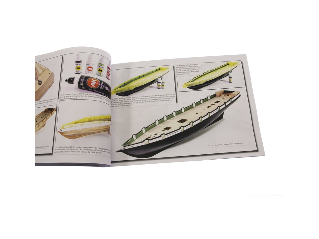 Balení obsahuje laserem řezané a gravírované díly vyrobené z MDF a hruškového dřeva, laserem gravírovaná a řezaná deska z lipového dřeva s detaily, 3 destičky vyrobené z fotoleptaných mosazných dílů, 3D tištěné díly s vysokým rozlišením, dvouplaňkový trup je z lipového dřeva pro první a hruškového dřeva pro druhé prkna obšívky, kulaté lišty z ořechového dřeva pro stěženě, ráhna a výložník. Několik velikostí černě a přírodně zbarvené nitě pro lanoví, stejně jako všechny potřebné součásti. Komplexní, barevný návod k použití spolu s 11 plánky obsahujícími všechny výkresy stěžně a lanoví - manuál EN