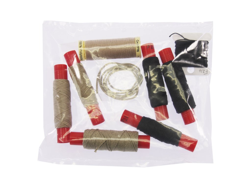 - Různé černé a přírodně zbarvené nitě lanoví, bloky a šrouby s oky
