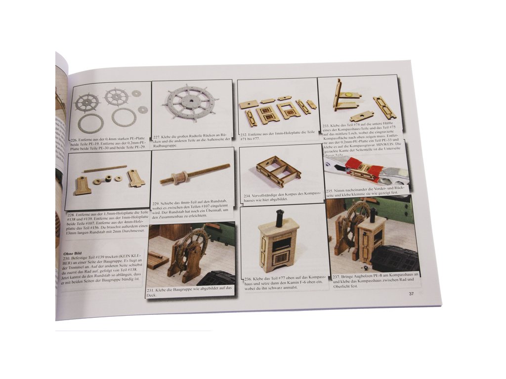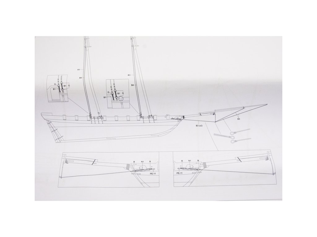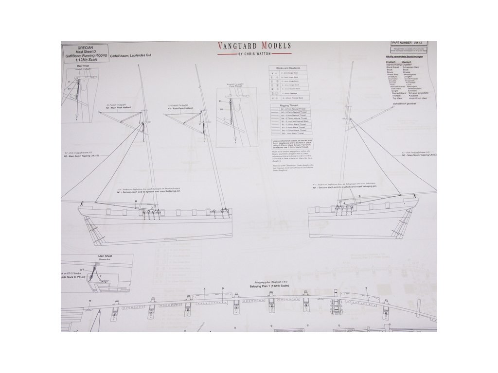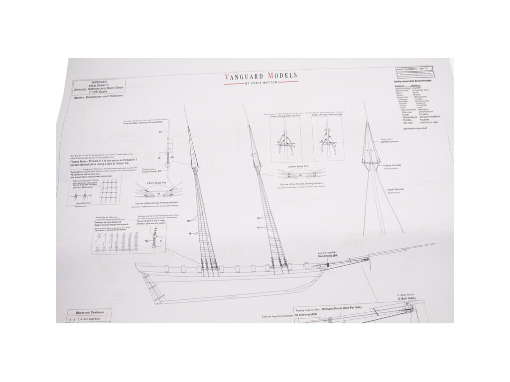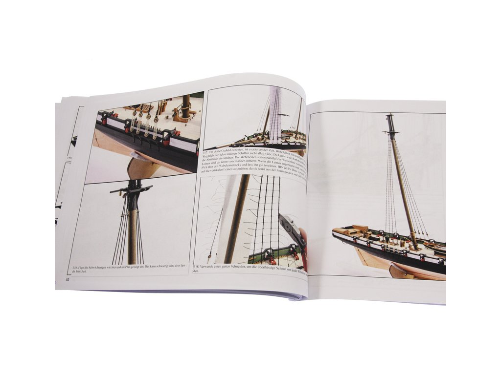 - Komplexní barevný návod k použití spolu s 11 plány obsahujícími všechny výkresy stěžňů a lanoví