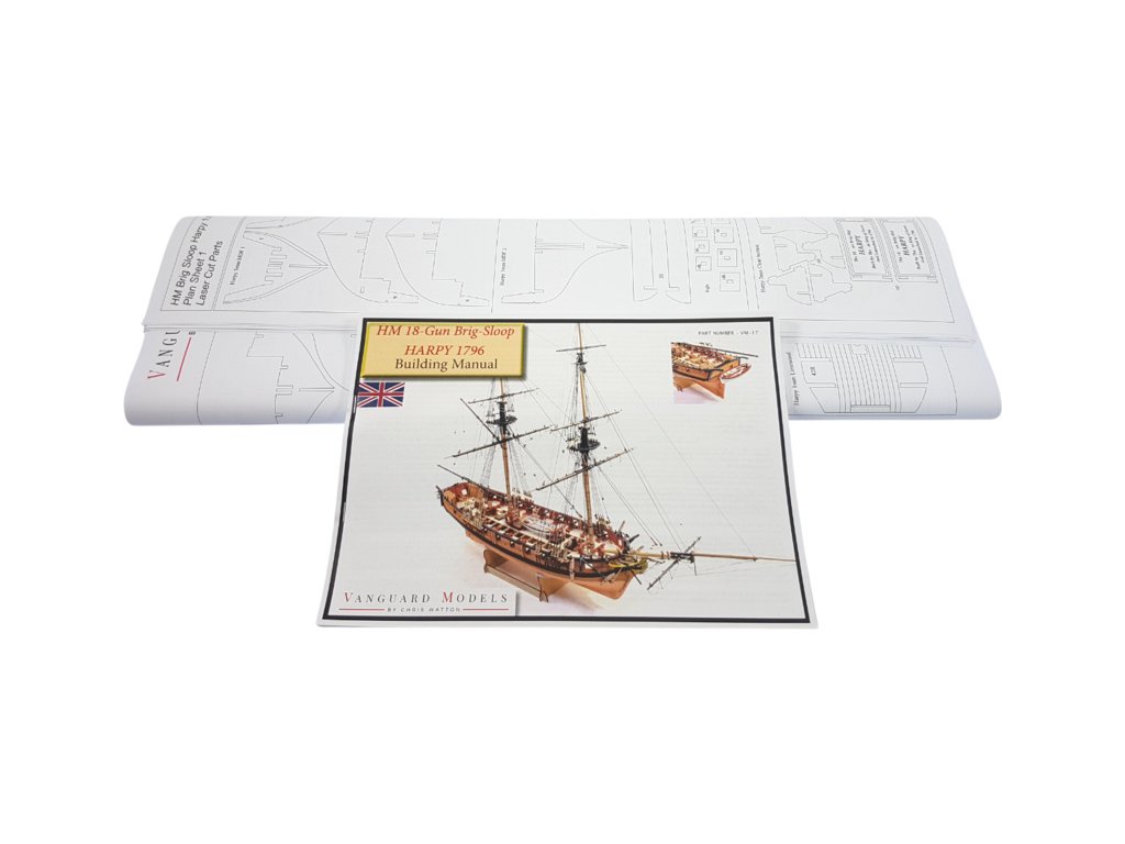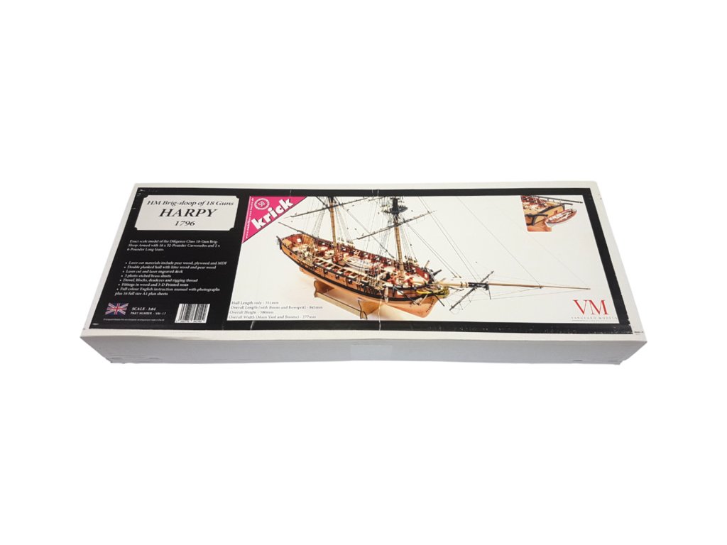Stavebnice neplovoucího modelu lodi Vanguard Models HM Brig Harpy 1796 1:64. Obsaženo je velké množství detailů vč. zpracované spodní paluby. V balení jsou díly pro stavbu - laserem řezané díly, lišty, fotolepy, lanoví, 3D tištěné díly, a další. Stavební výkresy a návod. Předlohou je válečná šalupa Královského námořnictva.