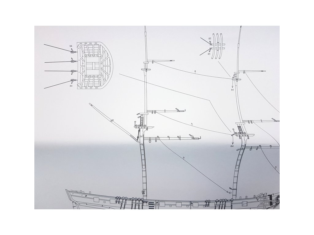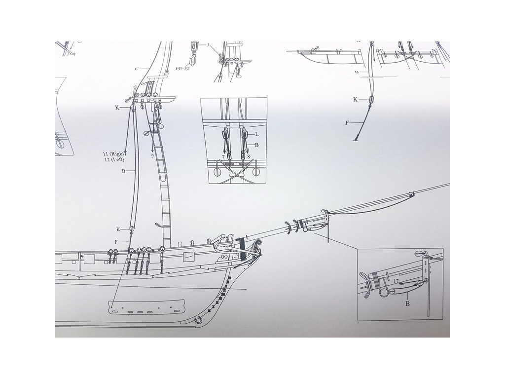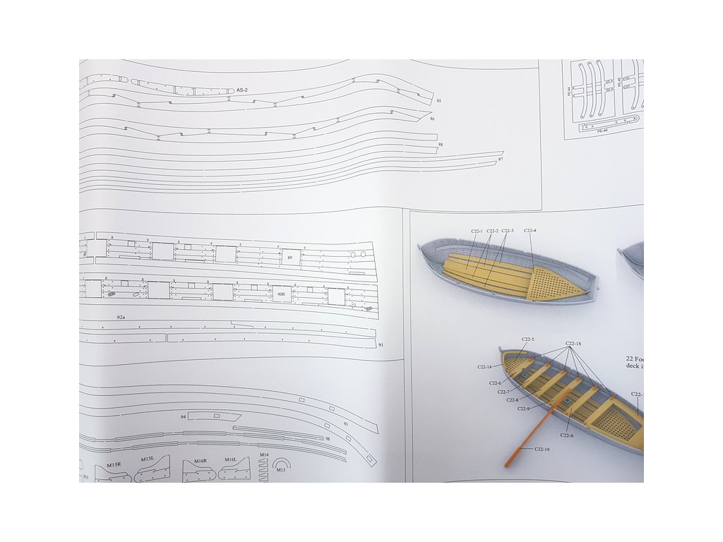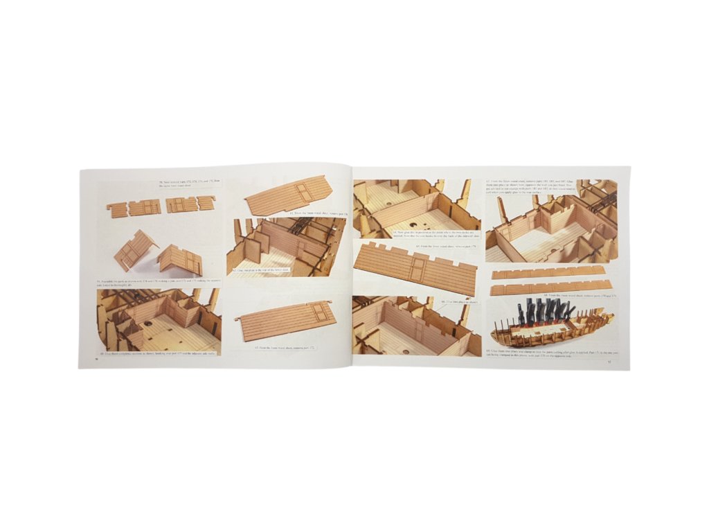 Set obsahuje bohatou kompletní sadu výkresové dokumentace modelu v měřítku s obrázky jednotlivých detailů. V přehledném obrazovém manuálu jsou nakresleny montážní sestavy, jejich kompletace a to včetně stěžňů a ráhen a způsob vázání lanoví. Postup stavby rámcově upravuje logické sestavení jednotlivých komponentů.