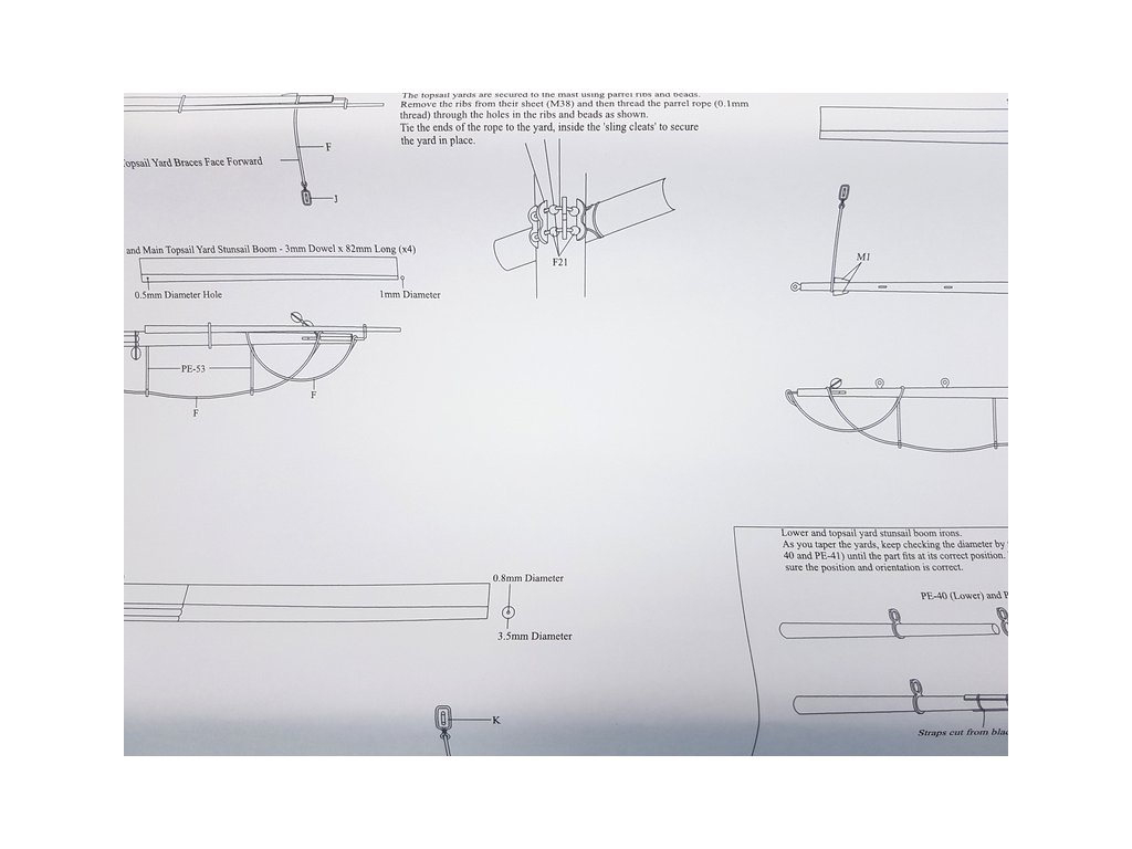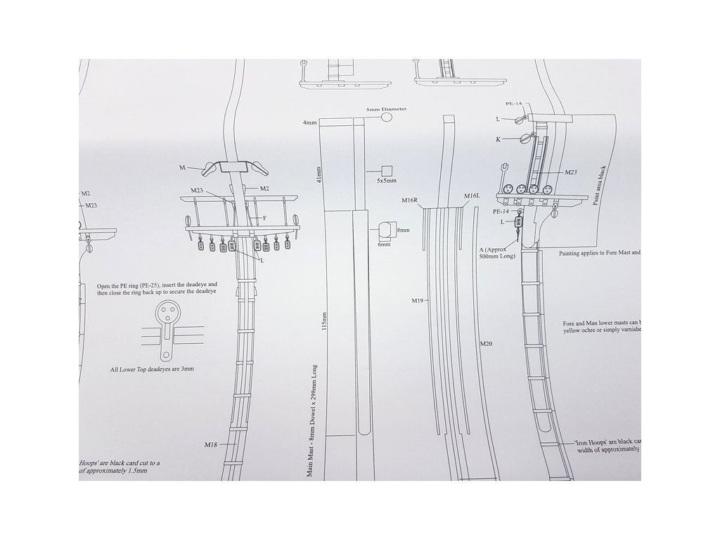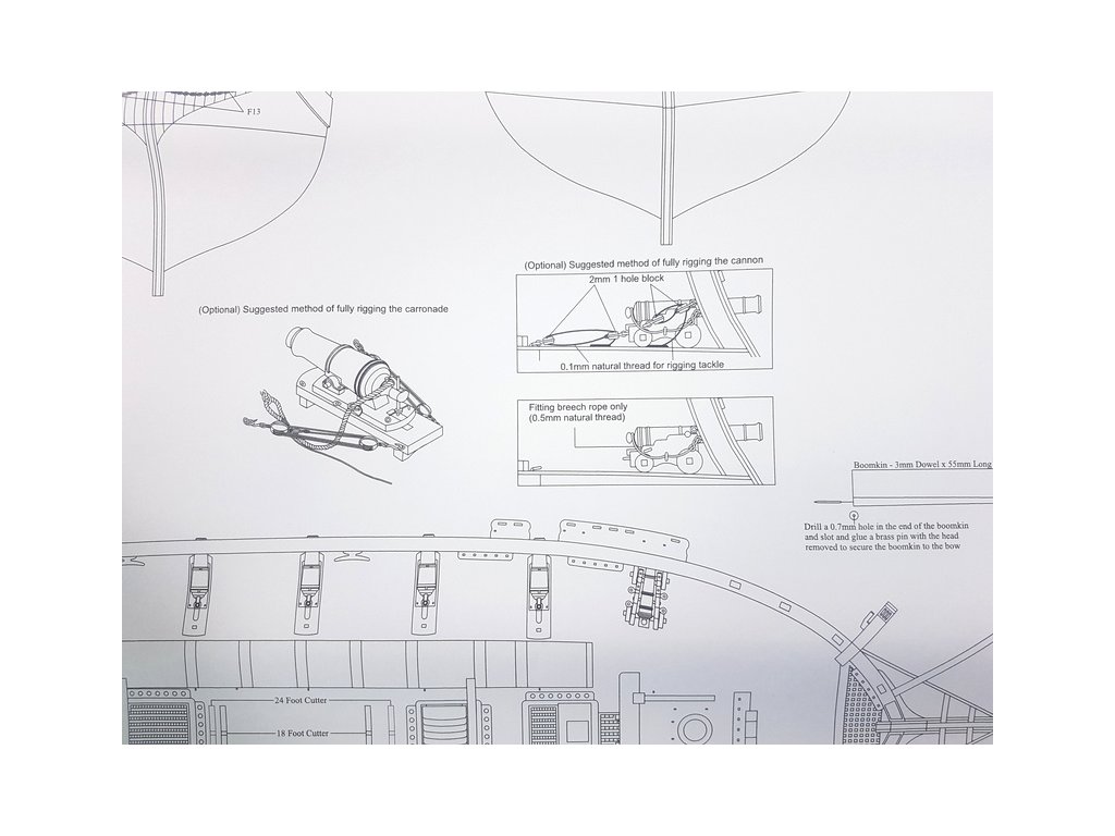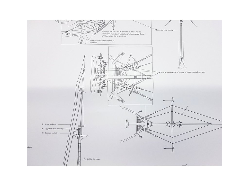 Set obsahuje bohatou kompletní sadu výkresové dokumentace modelu v měřítku s obrázky jednotlivých detailů. V přehledném obrazovém manuálu jsou nakresleny montážní sestavy, jejich kompletace a to včetně stěžňů a ráhen a způsob vázání lanoví. Postup stavby rámcově upravuje logické sestavení jednotlivých komponentů.
