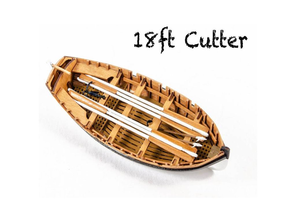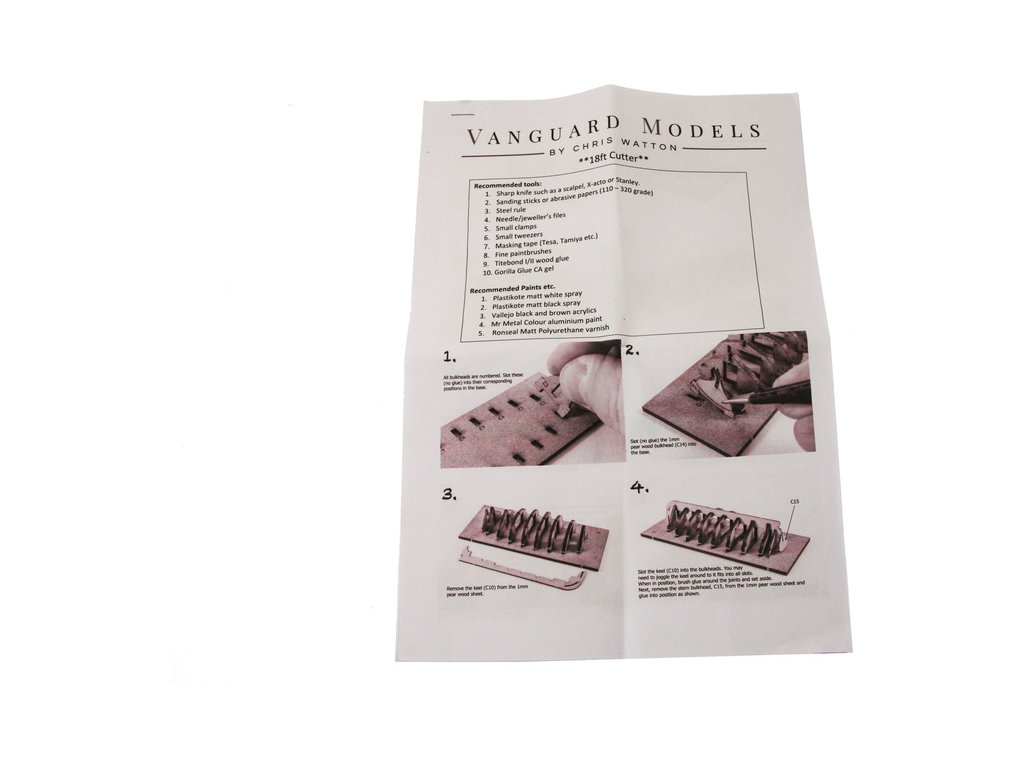 Stavebnice modelu lodi Vanguard Models - Kutter člun v měřítku 1:64. Délka modelu lodi je 86mm, stavba převážně ze dřeva s drobnými doplňky, součástí je i stavební plán. Obrazový manuál krok za krokem.