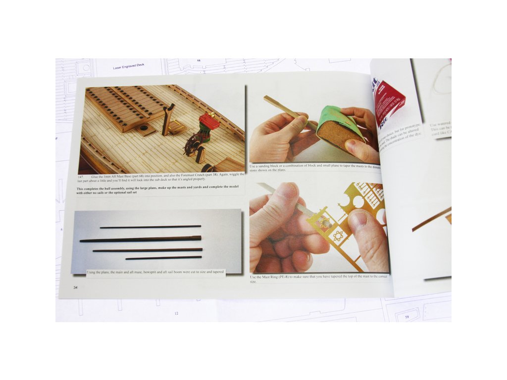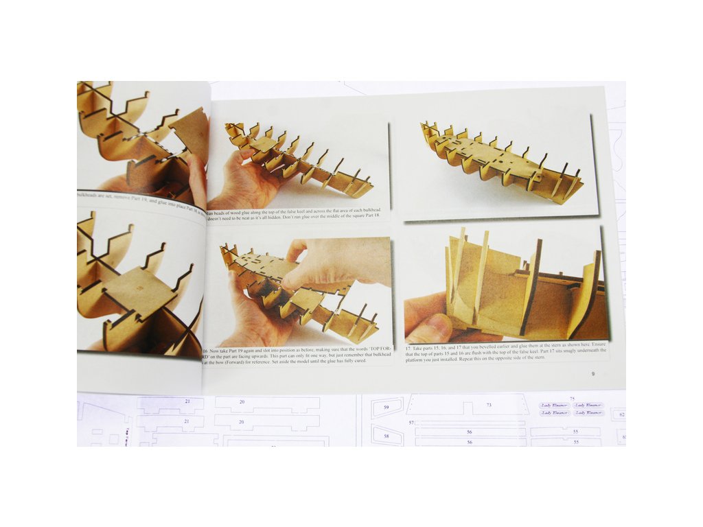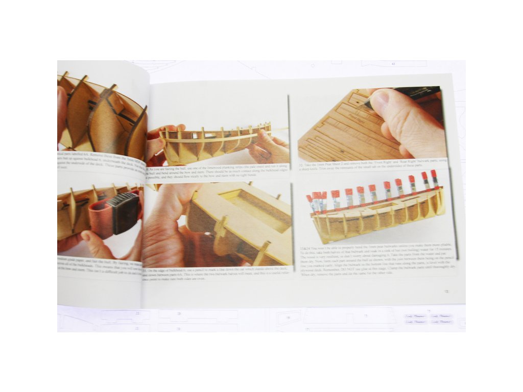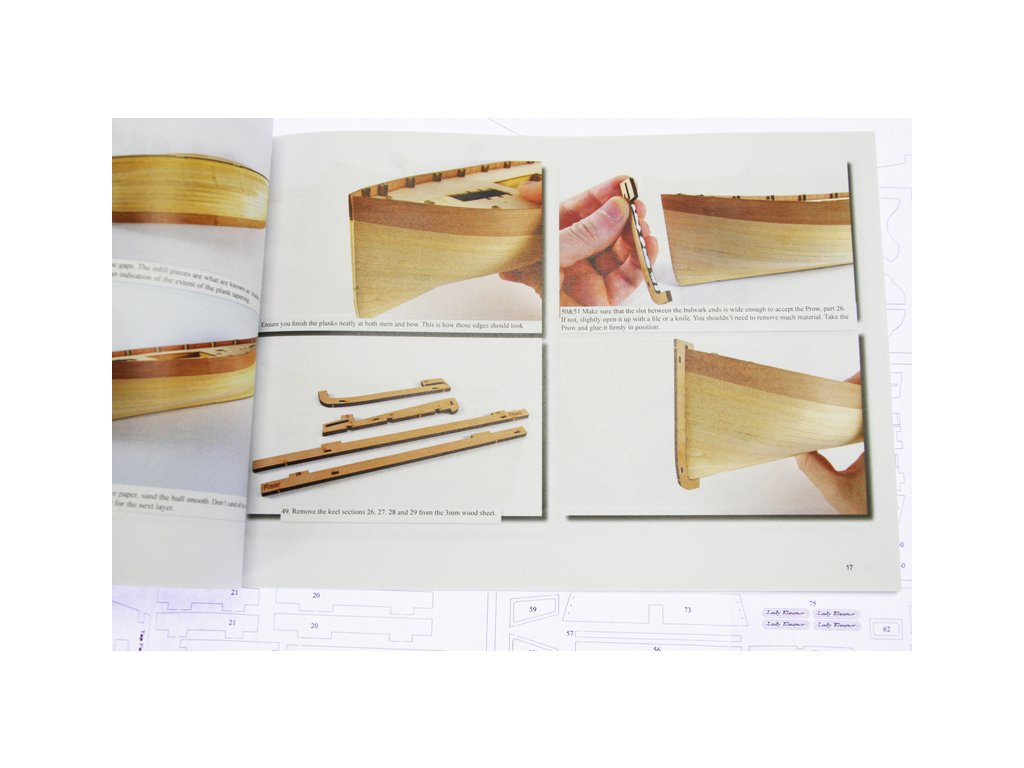 Set obsahuje kompletní sadu výkresové dokumentace modelu v měřítku 1:1 s obrázky jednotlivých detailů. Na výkrese jsou v měřítku nakresleny montážní sestavy, jejich kompletace a to včetně stěžňů a ráhen a způsob vázání lanoví. Vícejazyčný postup stavby rámcově upravuje logické sestavení jednotlivých komponentů.