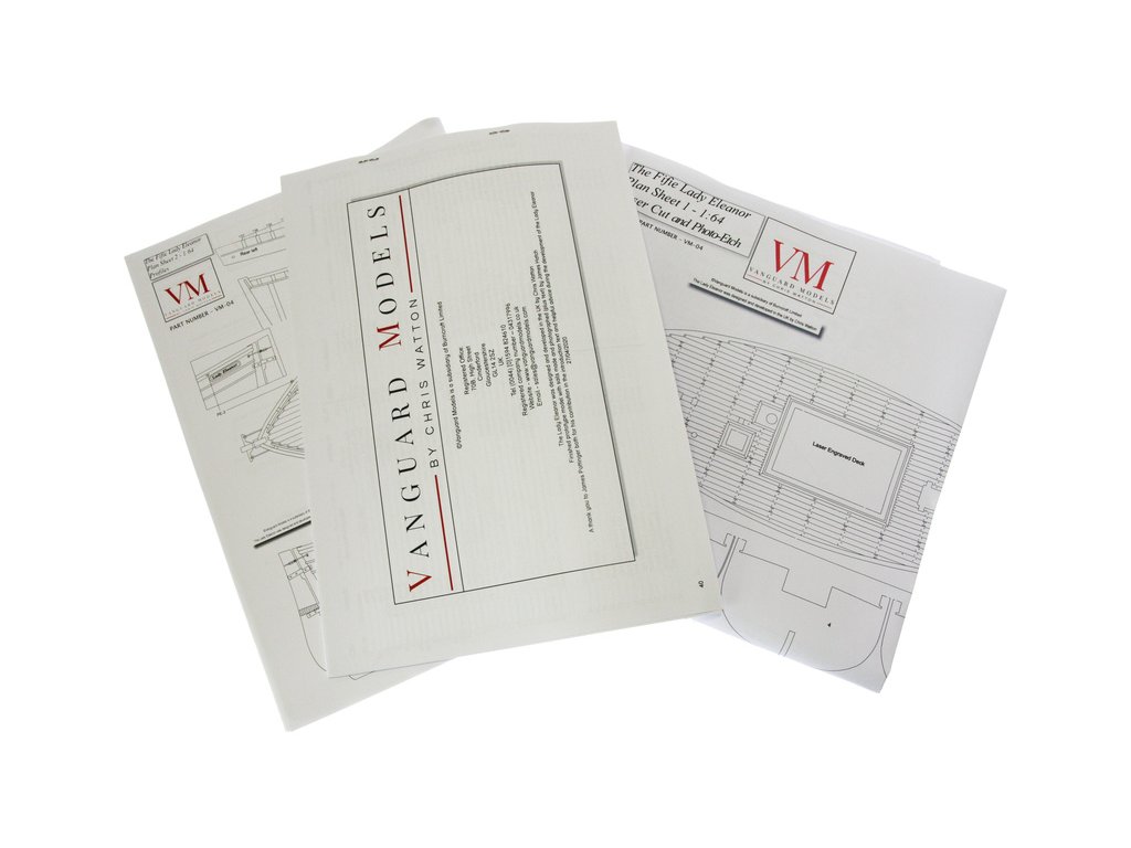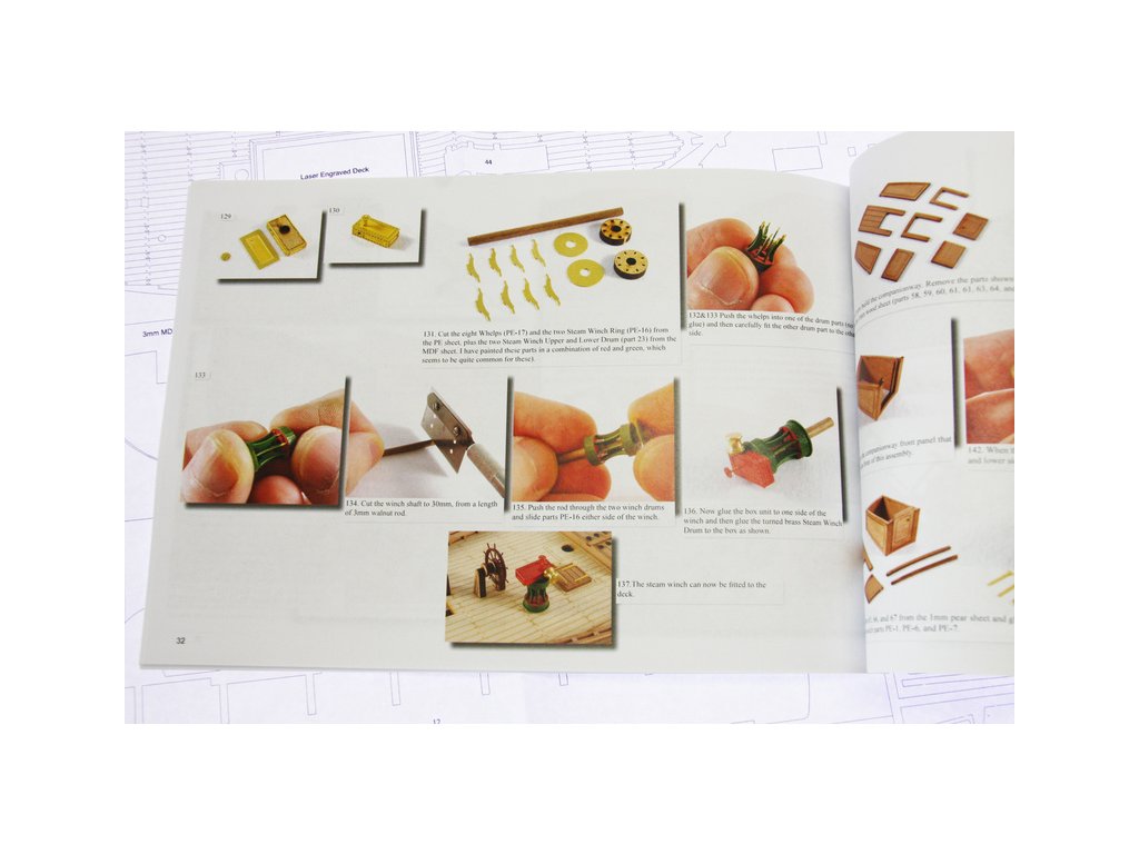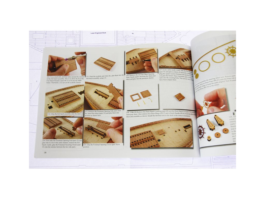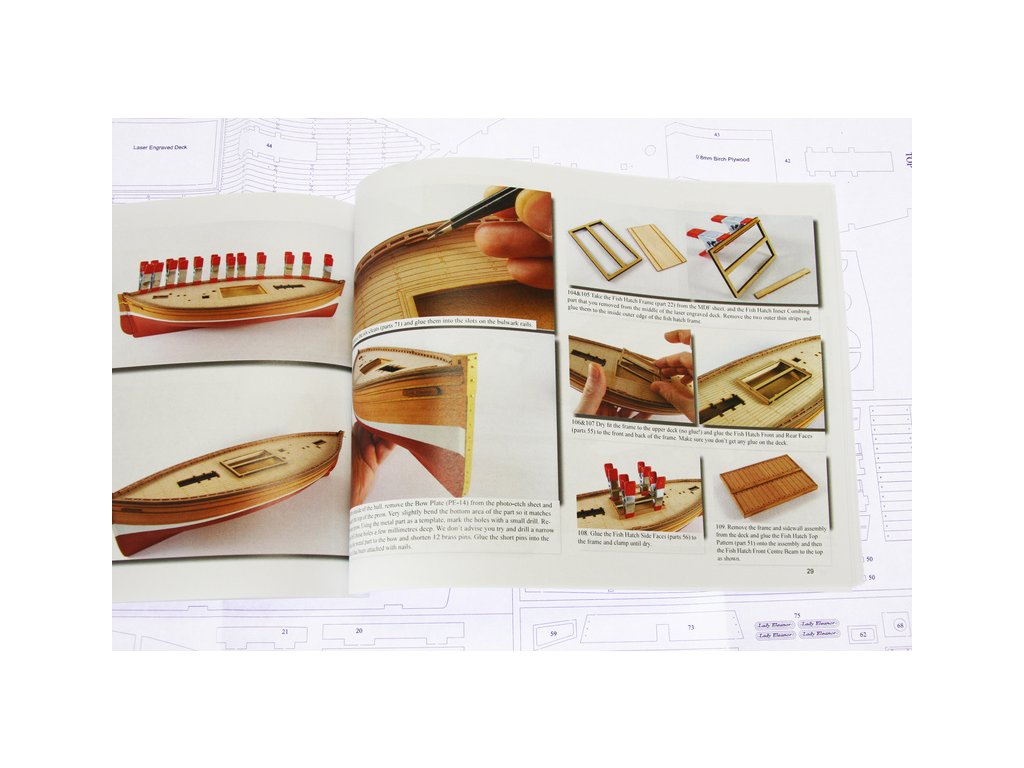 Set obsahuje kompletní sadu výkresové dokumentace modelu v měřítku 1:1 s obrázky jednotlivých detailů. Na výkrese jsou v měřítku nakresleny montážní sestavy, jejich kompletace a to včetně stěžňů a ráhen a způsob vázání lanoví. Vícejazyčný postup stavby rámcově upravuje logické sestavení jednotlivých komponentů.