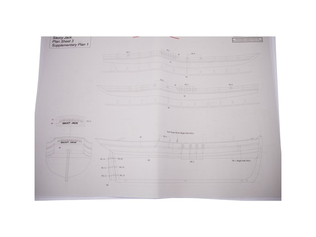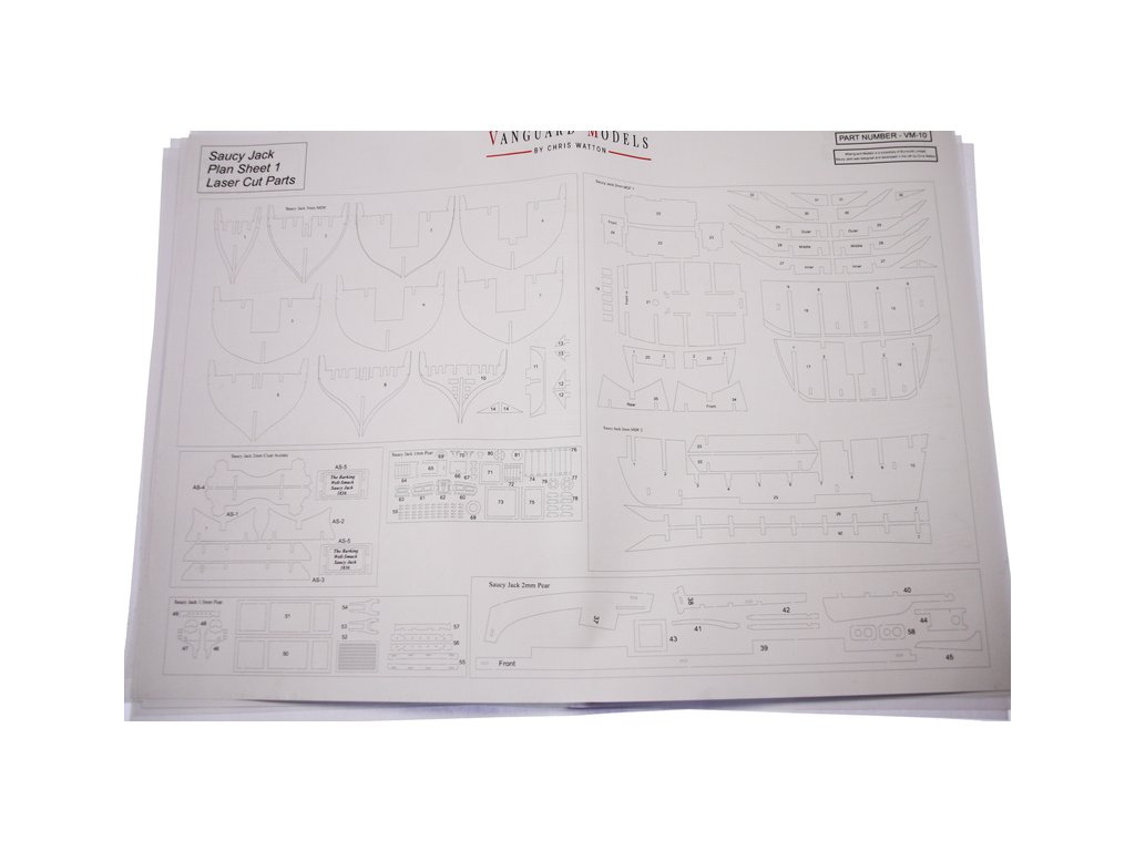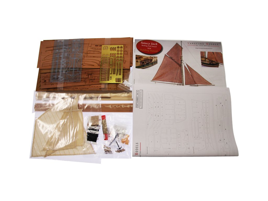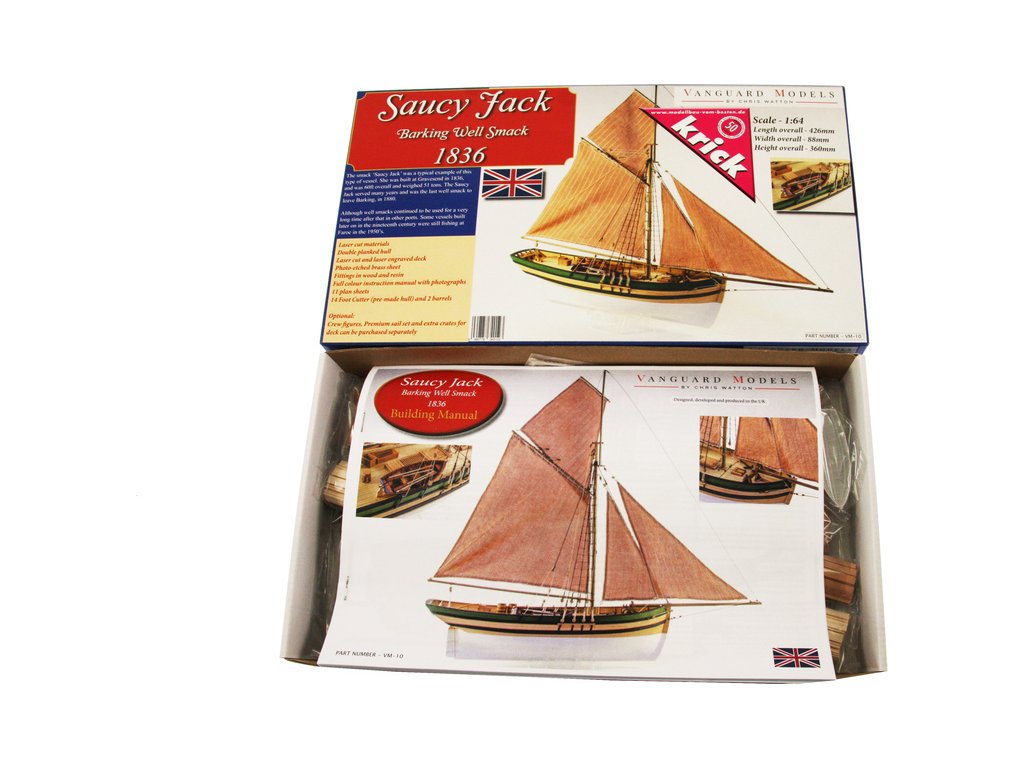 Stavebnice modelu lodi Saucy Jack v měřítku 1:64. Délka modelu lodi je 425 mm, stavba převážně ze dřeva s drobnými doplňky, součástí je stavební plán. Laserem řezané a 3D tištěné díly.