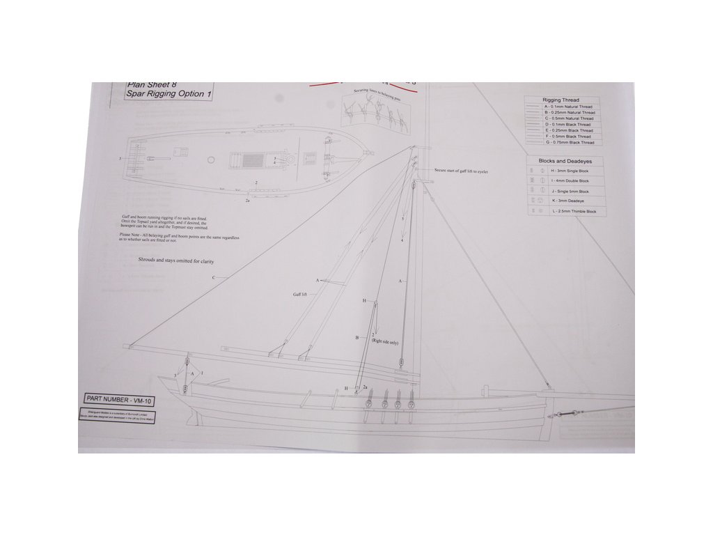 Set obsahuje kompletní sadu výkresové dokumentace modelu v měřítku 1:1 s obrázky jednotlivých detailů. Na výkrese jsou v měřítku nakresleny montážní sestavy, jejich kompletace a to včetně stěžňů a ráhen a způsob vázání lanoví. Vícejazyčný postup stavby rámcově upravuje logické sestavení jednotlivých komponentů.