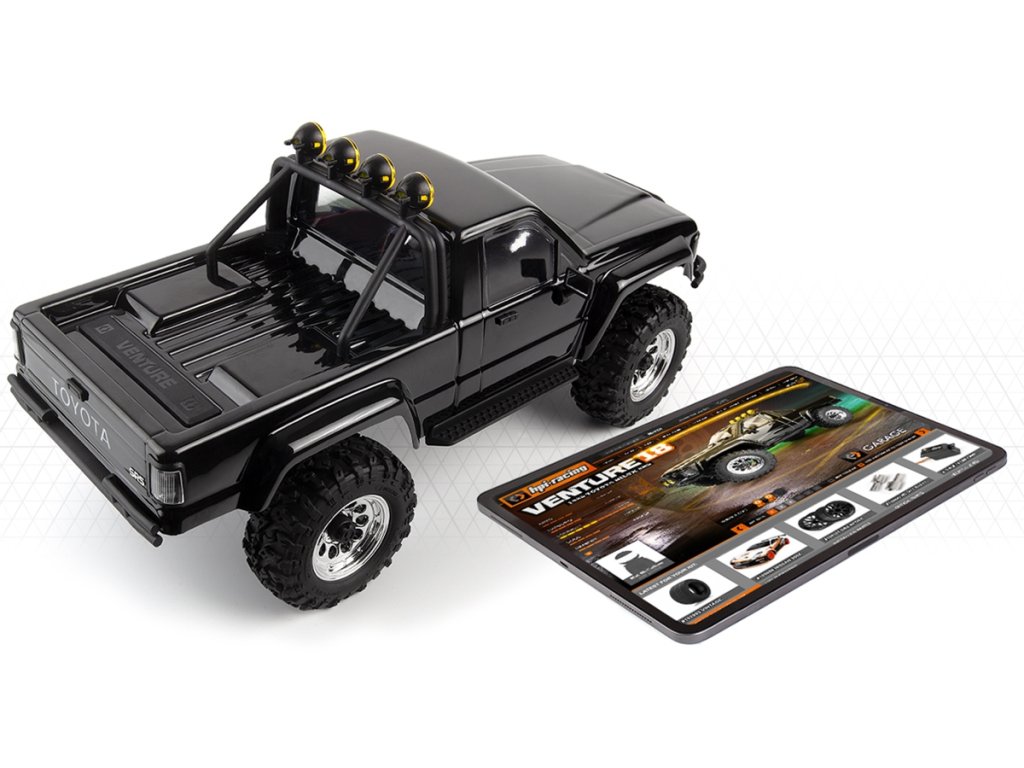 Venture18 také představuje návrat oficiálně licencovaných produktů Toyota do nabídky HPI Racing. Pečlivě zpracovaná polykarbonátová karoserie modelu Toyota Hilux SR5 z roku 1985 neobsahuje sponky a je k dispozici ve dvou výrazných barevných variantách - leskle černé a zářivě leskle červené. Obě barevné verze jsou k dispozici ve dvou výkonových variantách - stejnosměrná a střídavá (Flux).