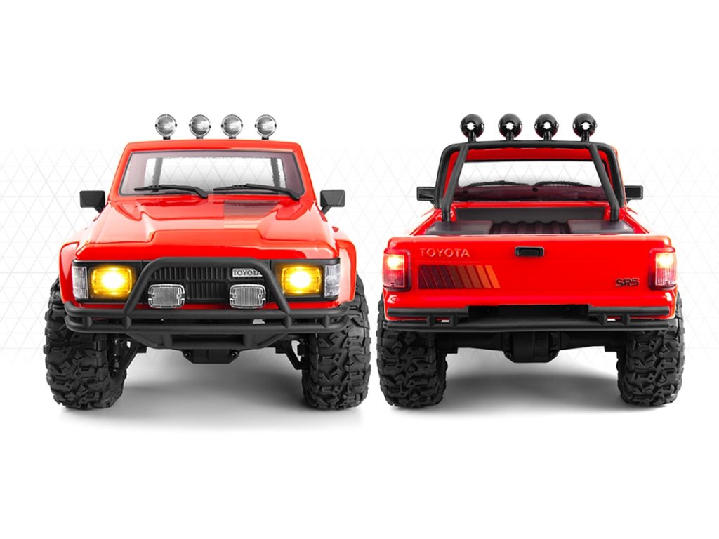 Karoserie je předlakovaná a obsahuje také čirá okna a maketové doplňky, jako jsou znaky Toyota, přední mřížka, kliky dveří, stěrače, funkční zrcátka, a navíc trubkové nárazníky a ochranná klec pro vysokou úroveň realismu. Namontovaná sada LED světel ještě více zvyšuje autenticitu a dodává modelu Venture18 další vrstvu detailů, která skutečně vynikne. Světla lze navíc ovládat přímo z vysílače.