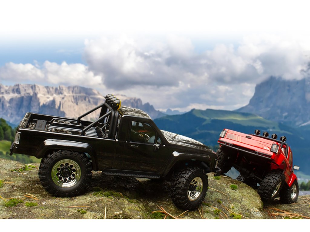 - Továrně sestavený terénní vůz v měřítku 1:18 elektrickým pohonem a plným náhonem 4WD