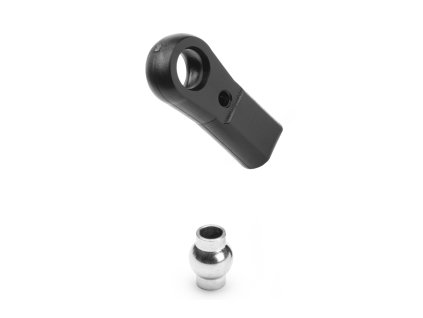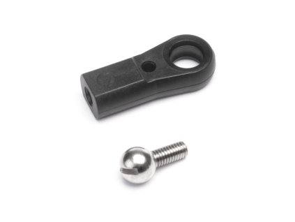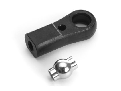 Nylonový pouzdro s kulovým čepem s otvorem 2mm pro pohyb bez tření. M2 závit v nylonovém pouzdře. Včetně ocelové spojky táhla se závitem M2 (KAV0130) a M2 matky.. Balení 2sety.