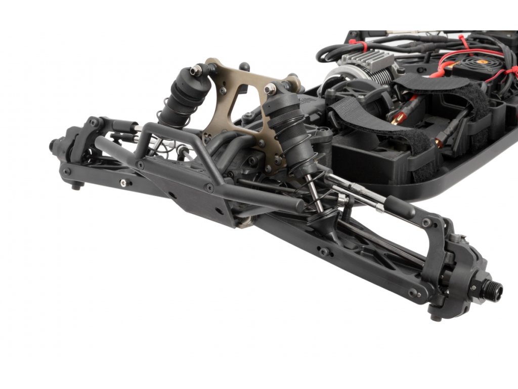 - Silné ocelové spojovačky dovolují vlastní nastavení geometrie podvozku