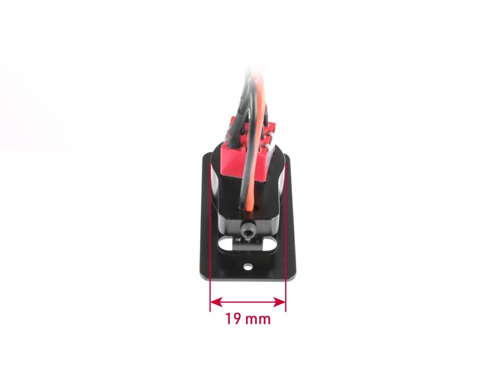 Konektory kompatibilní s JR a Futabou. Váha 28g vč. kabelů. Délka kabelů je 22cm. Ostatní rozměry a potřebné údaje pro instalaci jsme zahrnuli do fotografie.