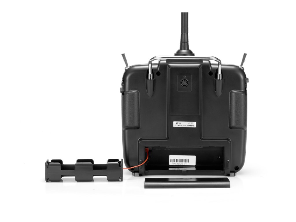 Napájení vysílače: AT10II umožňuje pro napájení použít širokou škálu zdrojů: 8 alkalických baterií vkládaných do držáku dodávaného s vysílačem, NiMH akumulátorové sady s 8 články (velikost AA, tužkové) nebo dvou- až čtyřčlánkové sady LiPo, LiFe, Li-ion. Napětí akumulátoru je zobrazováno na displeji v číselné i grafické podobě, prahová úroveň signalizace nízkého napětí je nastavitelná. Doporučujeme naše 9,6 V NIMH sady z článků s nízkým samovybíjením (Eneloop, RayLong) vyráběné vysílači přímo na míru a opatřené odbočkou pro nabíjení.