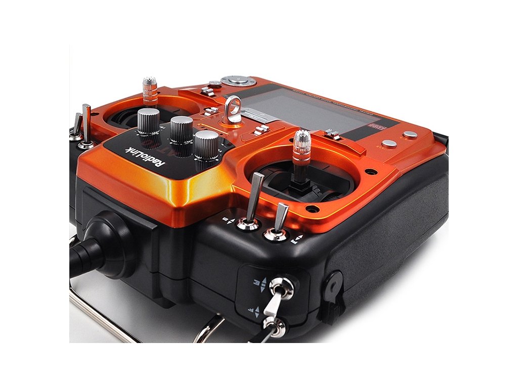 Ovládací prvky: Pro ovládání hlavních funkcí slouží přesné křížové ovladače s nastavitelnou silou neutralizačních pružin a možností přesunutí aretované osy pro plyn vlevo nebo vpravo. Díky tomu můžete libovolně volit provozní módy křížových ovladačů 1-4. Páky ovladačů mají nastavitelnou délku, můžete také dokoupit dlouhé hliníkové hlavice (se závitem M3). Digitální trimy mají zvukovou signalizací krokování a grafické zobrazení poloh na displeji. Jsou umístěny mírně excentricky a jsou snadno dosažitelné. Další proporcionální funkce mohou ovládat dva otočné ovladače na bocích vysílače s mechanicky aretovanou středovou polohou a tři knoflíky umístěné ve středu nad hlavním vypínačem. 8 přepínačů (z toho tři třípolohové a jeden momentový dvoupolohový) může sloužit jako kanálové přepínače, pro přepínání letových režimů nebo zapínání/vypínání mixů. Ovládací prvky jsou volně přiřaditelné.