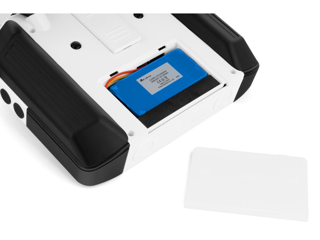 K napájení slouží 2S LiPo akumulátor s kapacitou 4000 mAh, který nabijete přímo přes USB-C. Vysílač je vybaven balancérem (±50 mV) pro 2S LiPo akumulátory, a nabíjí proudem 2 A při 5 V.