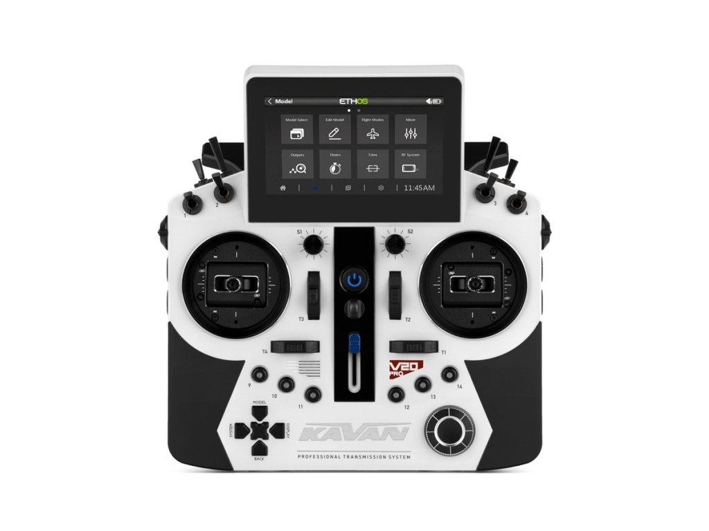 KAVAN V20 Pro je špičková 24kanálová RC souprava pro nejnáročnější modeláře se zcela novým třípásmovým přenosovým systémem TD Pro s plnou podporou telemetrie. Pyšní se špičkovou odezvou do 4 ms, a to na vzdálenost až desítky kilometrů. Zvolit můžete i přenosové systémy TW/TD/ACCESS/ACCESS R9/ACCST D16, rovněž s telemetrií. Spárovat V20 Pro tedy lze s celou řadou přijímačů KAVAN nebo FrSky, ať už telemetrických či nikoliv, s klasickými PWM a S.BUS výstupy.