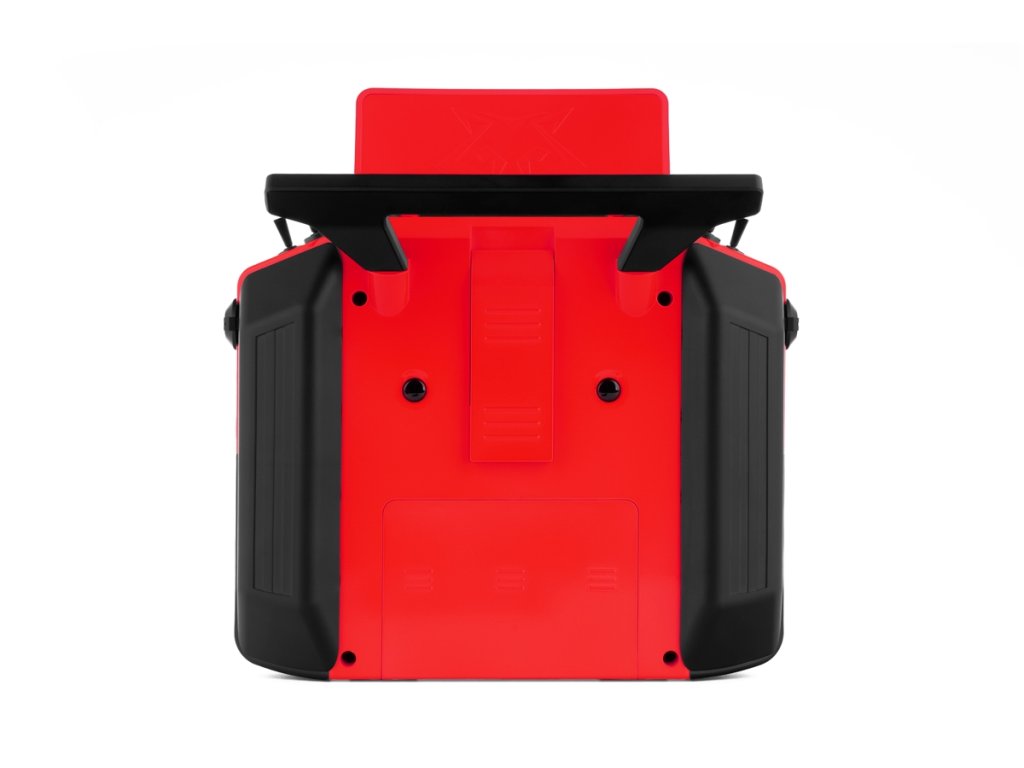 Tělo vysílače je robustní a dokonale padnoucí do ruky. Pogumované gripy na bocích a zadní straně vysílače poskytují pevný pohodlný a jistý úchop. Odtud bez obtíží dosáhnete na všechny ovladače. Gimbaly se nachází těsně u okrajů vysílače. Na komfortní držení vysílače tedy nepotřebujete ani pult. Pro maximální ergonomii lze dokoupit i dlouhé tuningové páky s přepínači.