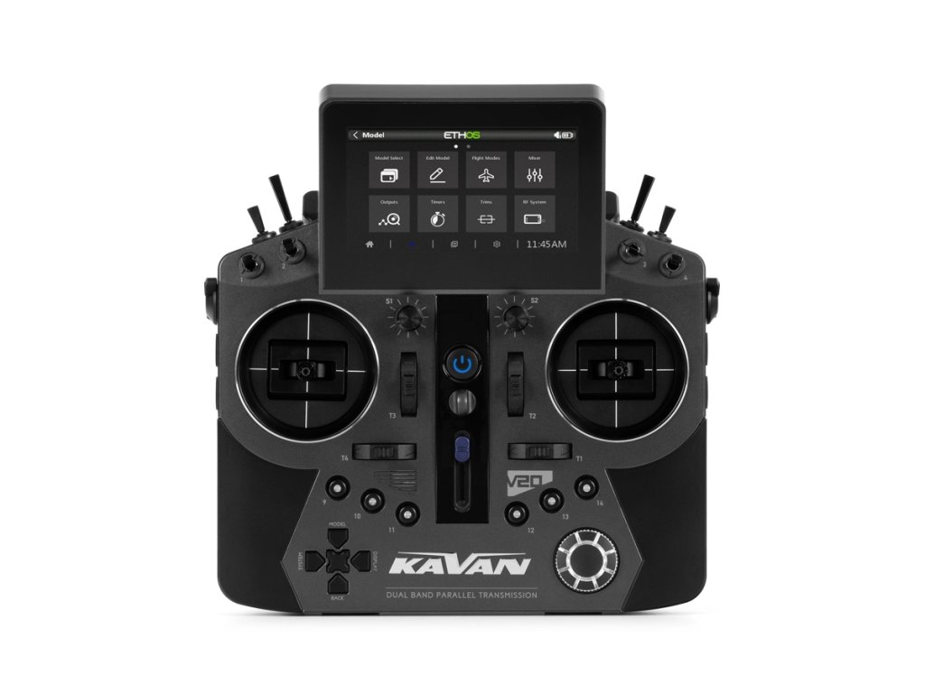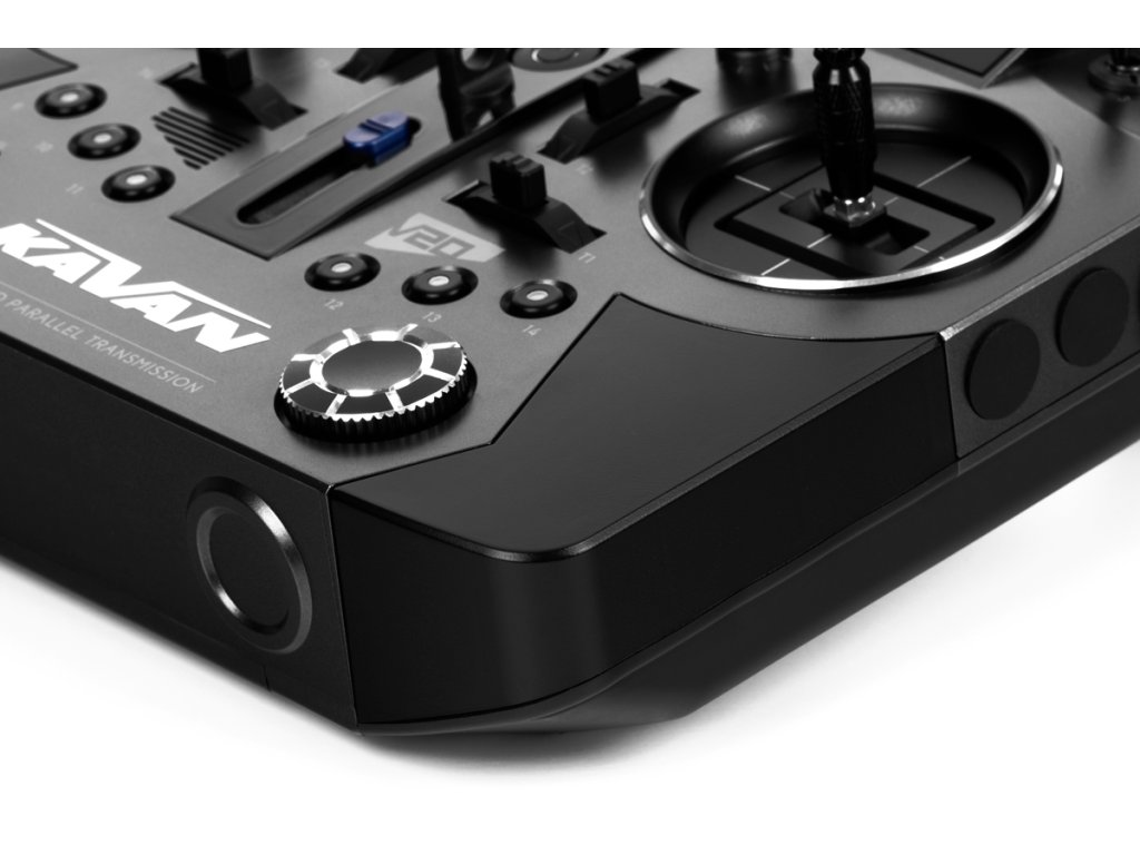 KAVAN V20 je pokročilá 24kanálová RC souprava využívající 2,4GHz simultánní dvoufrekvenční přenosový systém s plnou podporou telemetrie. Pyšní se špičkovou odezvou do 4 ms, a to na vzdálenost až desítky kilometrů. Zvolit můžete i přenosové systémy ACCST D16 nebo ACCESS, rovněž s telemetrií. Spárovat V20 tedy lze s celou řadou přijímačů KAVAN nebo FrSky, ať už telemetrických či nikoliv, s klasickými PWM a S.BUS výstupy.